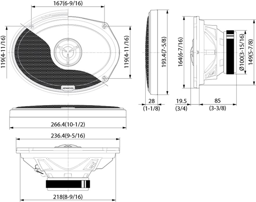 130 W RMS, 89 dB (SPL 1W/1m), 4 Ω, монтажна дълбочина на говорителя 85 mm