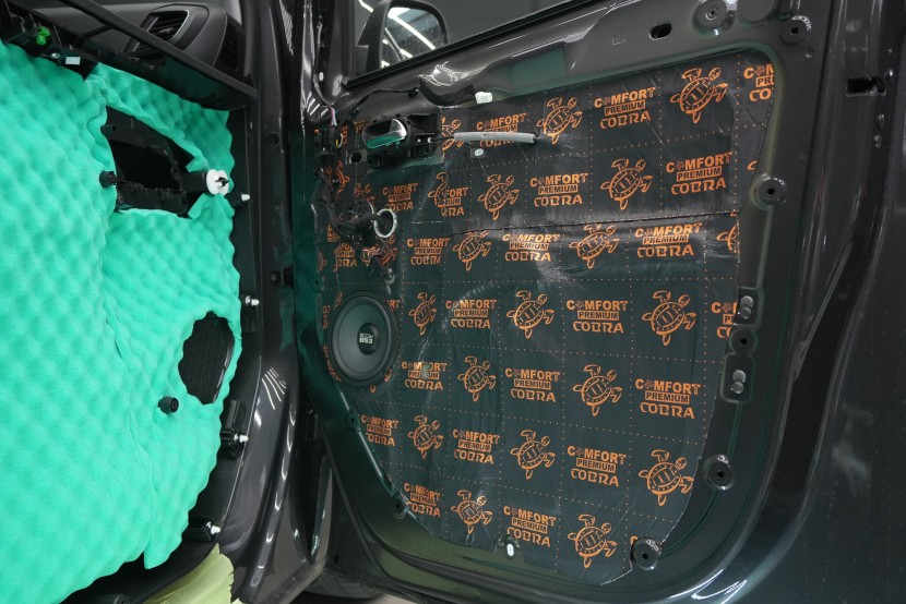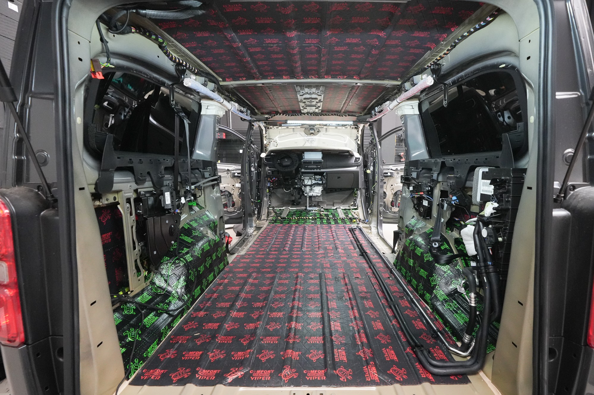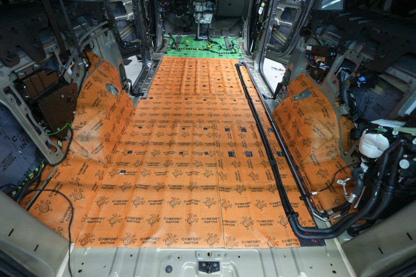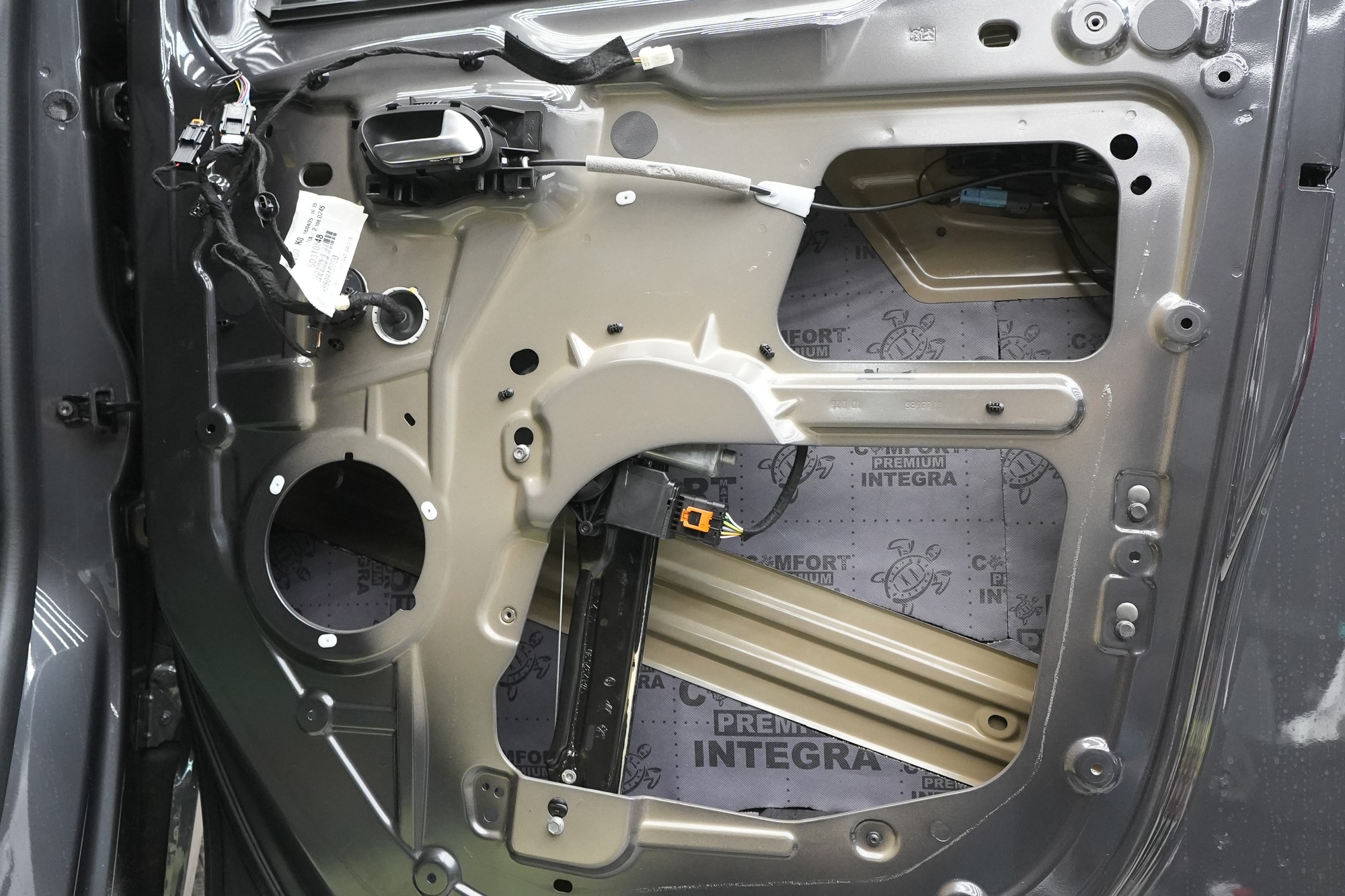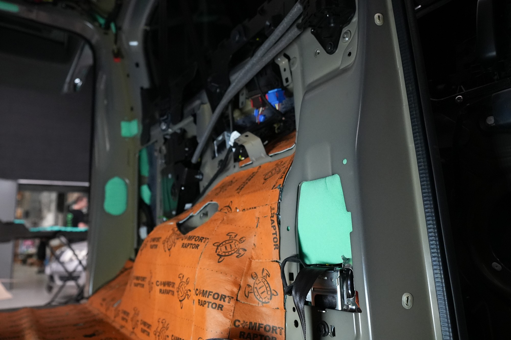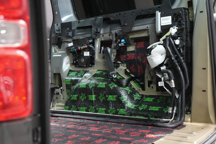 Собственикът на автомобила се реши на пълна шумоизолация в рамките на нашия пакет Expert Plus, който наскоро беше модернизиран. Ново във внедряването е използването на водещия звукоизолационен материал Comfortmat Titan, приложен предимно върху пода и арките на колелата – т.е. части от каросерията, които са най-силно подложени на шумово натоварване. Този материал може да намали шума до 38 dB, което го поставя сред най-ефективните решения днес. Двуслойната конструкция, комбинираща материали от професионалната серия Expert, гарантира максимален акустичен ефект и дългосрочна издръжливост.