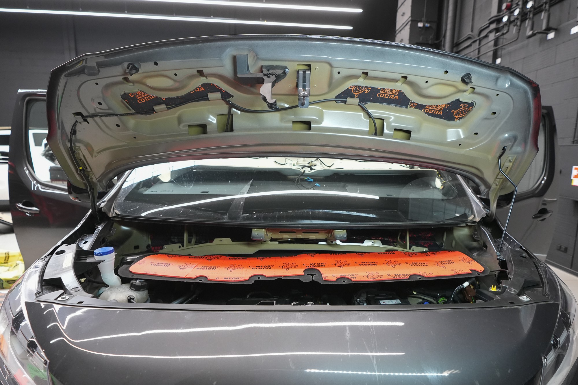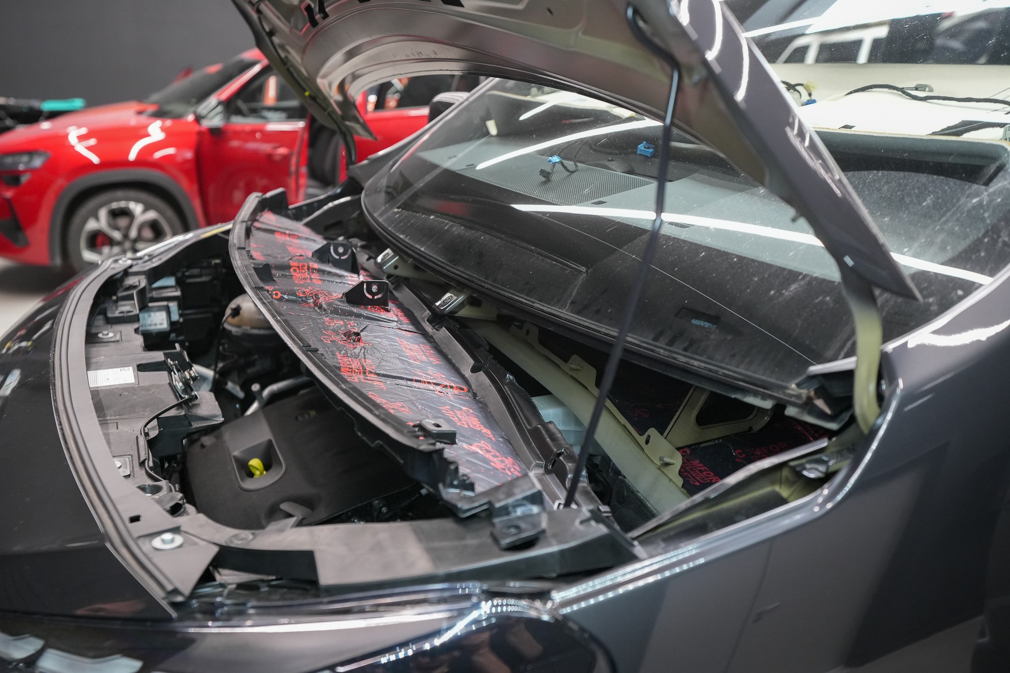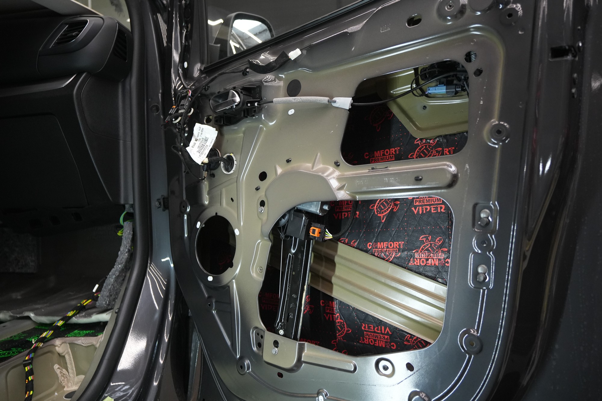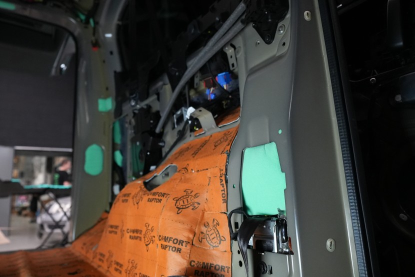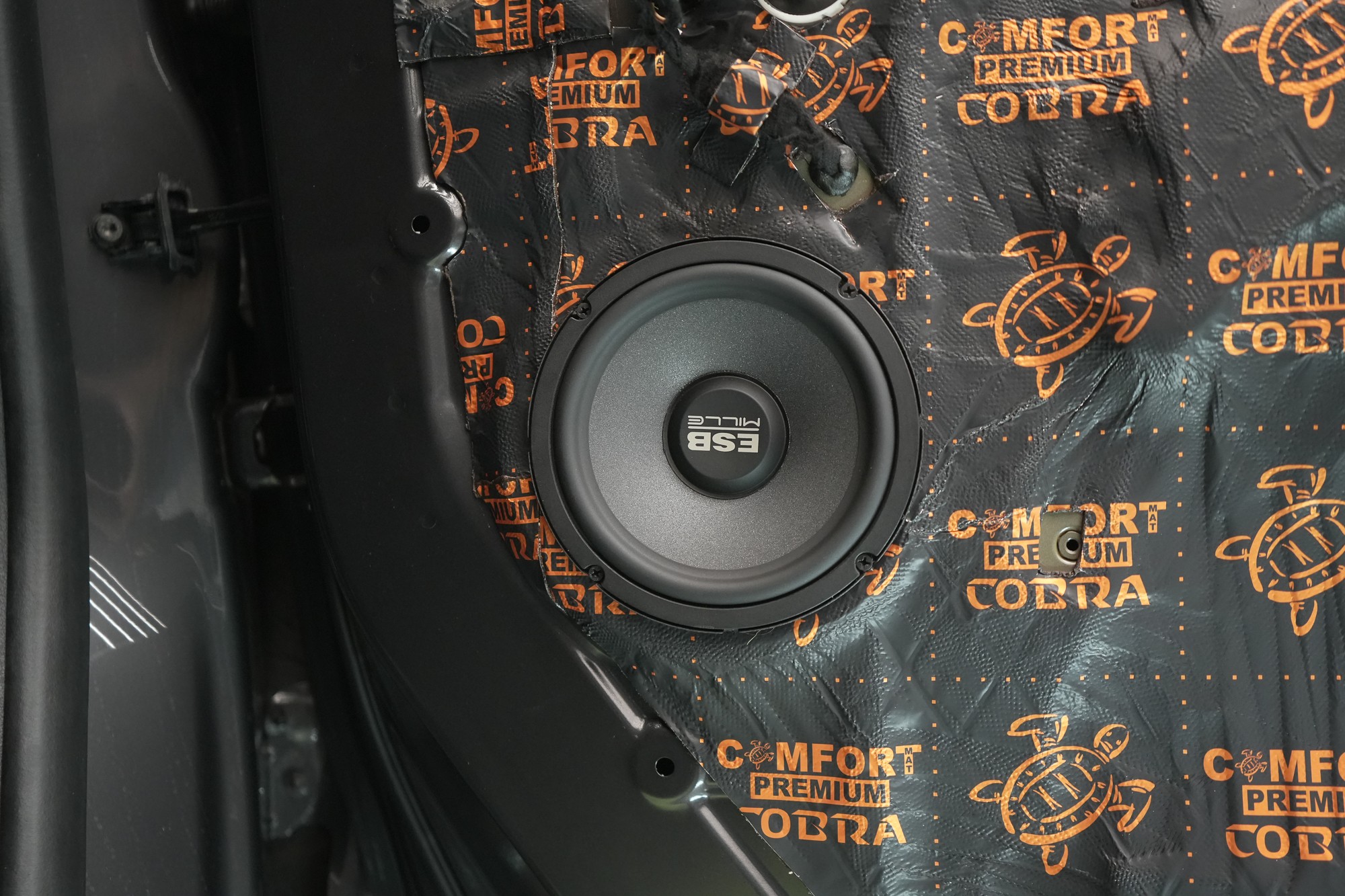Собственикът на автомобила се реши на пълна шумоизолация в рамките на нашия пакет Expert Plus, който наскоро беше модернизиран. Ново във внедряването е използването на водещия звукоизолационен материал Comfortmat Titan, приложен предимно върху пода и арките на колелата – т.е. части от каросерията, които са най-силно подложени на шумово натоварване. Този материал може да намали шума до 38 dB, което го поставя сред най-ефективните решения днес. Двуслойната конструкция, комбинираща материали от професионалната серия Expert, гарантира максимален акустичен ефект и дългосрочна издръжливост.