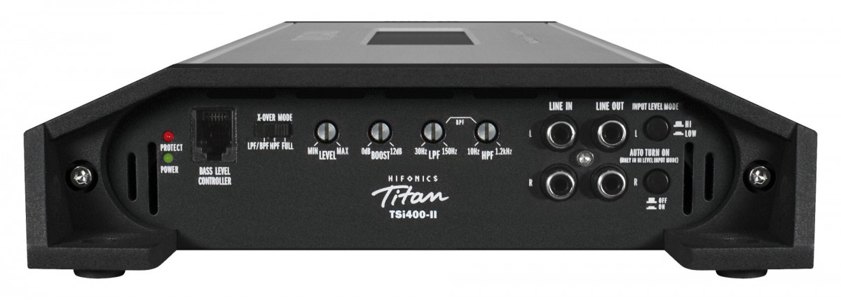 Напълно новата серия усилватели Titan TSi продължава традицията на мощните усилватели HiFonics. Модерен и компактен дизайн и съвсем нови технологии в сравнение с предишните модели. Новата функция Autorun включва усилвателя автоматично при включване на уредбата (не е необходимо свързване на remote кабел). Сигналът може да се свърже както с RCA (cinch) кабели, така и чрез вход за висок ниво. Функцията за автоматично включване позволява този усилвател да бъде свързан към почти всяка система във всеки автомобил и дори като разширение на фабричното озвучаване. Серията Titan TSi представлява топ-клас звук дори за най-взискателните. Заедно с прецизния дизайн на шасито и вграденото лого с двойно подсветяване, всеки усилвател Titan TSi е перфектен!