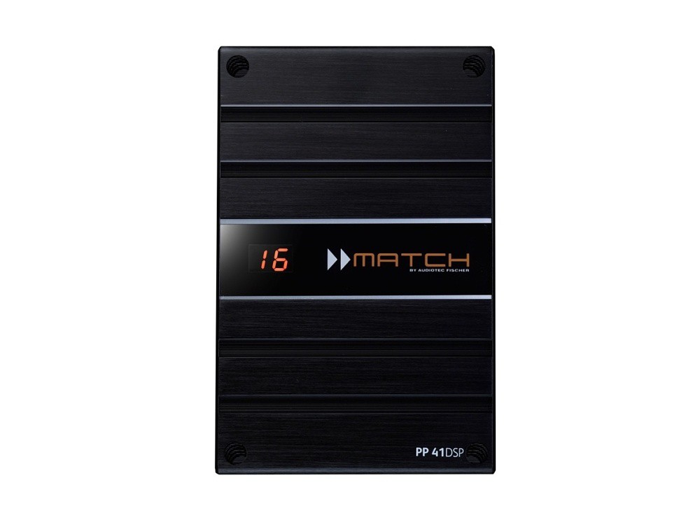 Просто и ясно, PP 41DSP - лесно може да подобри звука на оригиналната аудиосистема. 4-каналният усилвател PP 41DSP вече е напълно конфигуриран и се доставя с подходящите свързващи кабели за конкретния тип автомобил. До 16 различни настройки за дигиталния процесор на сигнала в усилвателя, който включва вътрешна памет. Правилната конфигурация за автомобила се извършва с помощта на два бутона за настройка. Излишно е да се споменава, че доставеният комплект позволява свързване без никакво прекъсване на кабелния сноп на автомобила. Това е Plug & Play от Match.