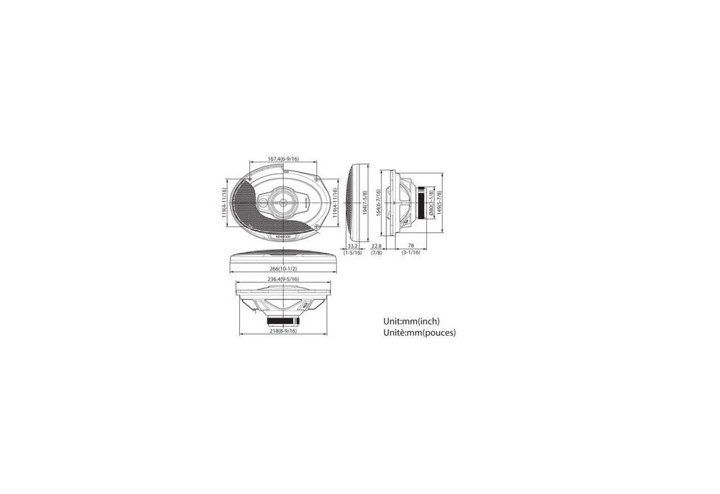 105 W RMS, 88 dB (SPL 1W/1m), 4 Ω, монтажна дълбочина на говорителя 78 мм