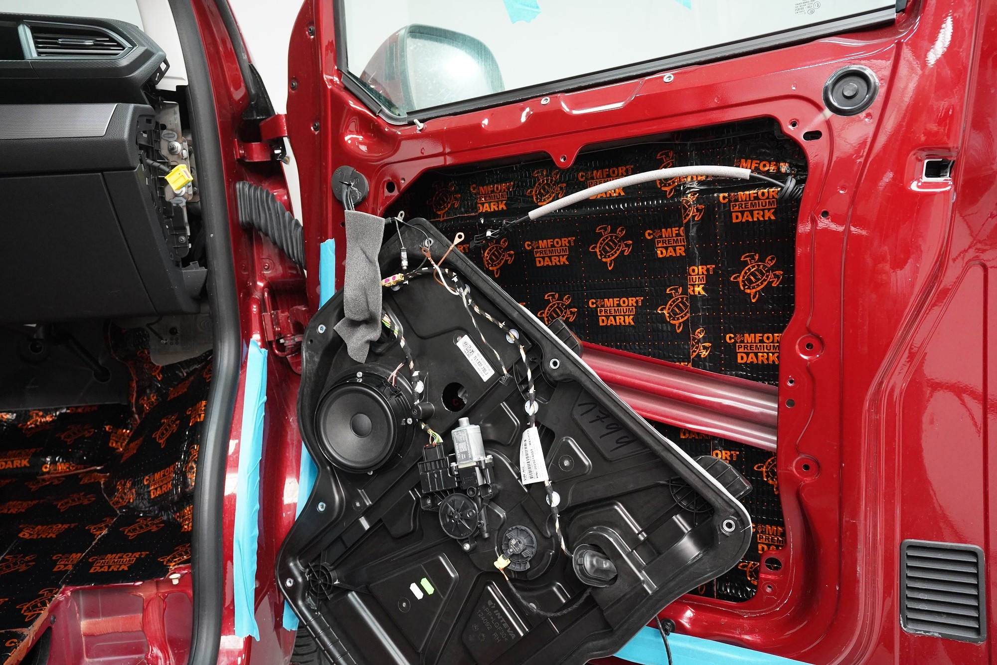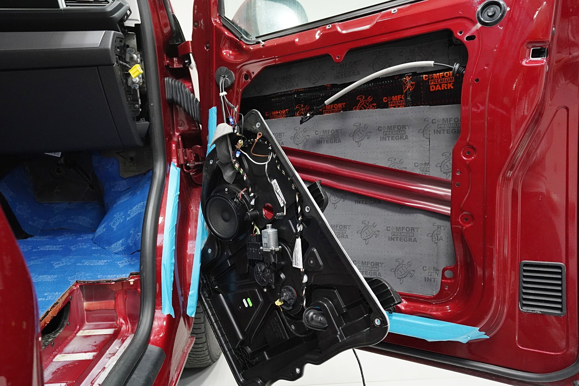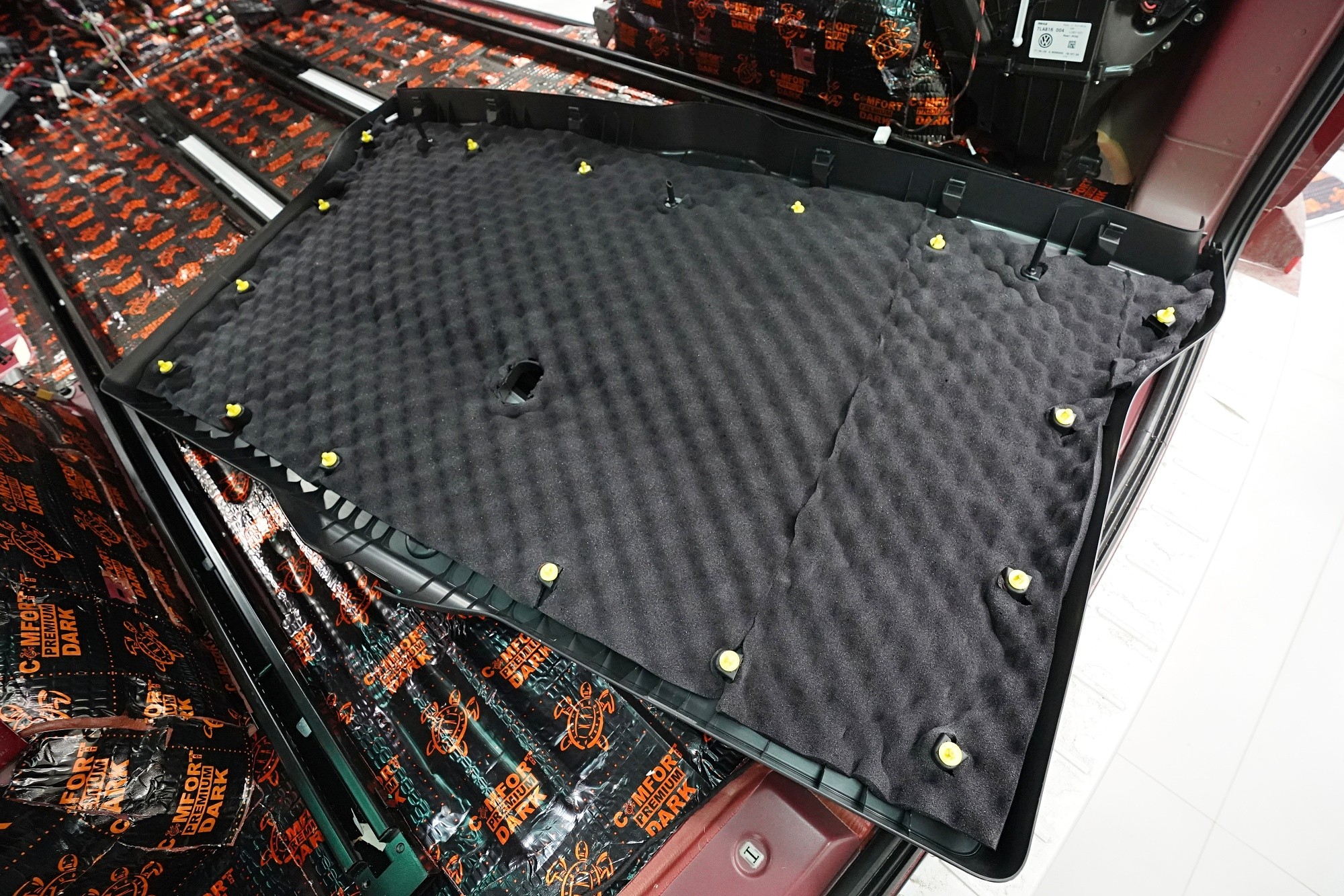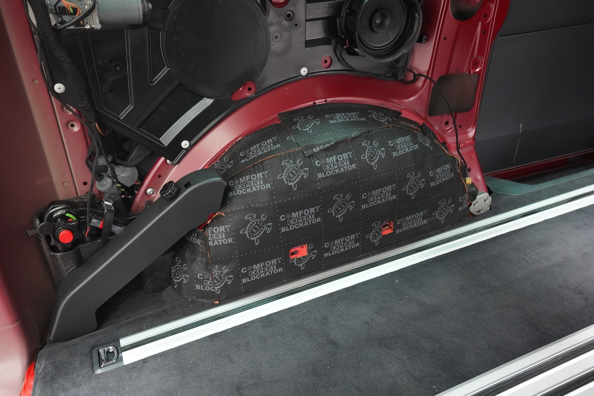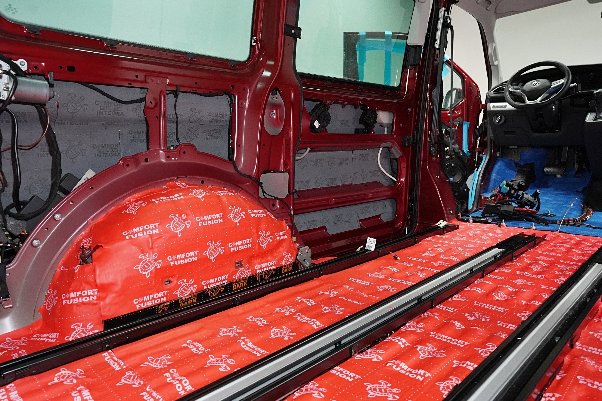 Пълна шумоизолация на Volkswagen T6.1. Това MPV, популярно във всички поколения, е след Mercedes V-Class най-честият посетител в нашия сервиз. И двата модела имат едно общо нещо — практически нулева заводска изолация. Поради конструкцията на автомобила не може да се очаква нищо друго, освен много силен шум в интериора. Най-големият проблем е аеродинамичният шум, шумът от гумите и пътната настилка, но също така и шумът от двигателя, трансмисията и окачването на колелата. Единственото решение е да се обезшумява автомобилът цялостно. С клиента избрахме нашия най-ефективен пакет шумоизолация Expert Plus, който обхваща всички важни области на автомобила. Конкретно се насочихме към предни, плъзгащи и пета врата, пода, покрива, страничните части, предни и задни калници, таблото и капака. Разбира се обезшумяваме и повечето пластмасови елементи в интериора. За пакета Expert Plus избираме по-ефективни и по-здрачни материали в сравнение с класическия пакет Expert и автомобилът е обезшумен до максимално възможното. За такъв голям автомобил цената е повишена спрямо обикновените автомобили, тъй като сме прекарали повече време и сме изразходвали по-голям брой материали. По шумоизолацията едновременно работят трима наши техници и монтажът се справя в рамките на 1 работен ден. Тъй като всички материали Comfortmat имат и термоизолационни свойства, този автомобил вече е защитен от топлинни загуби и техните изолационни качества ще оцените както през зимата, така и през лятото.Показване на продуктиСкриване на продукти
