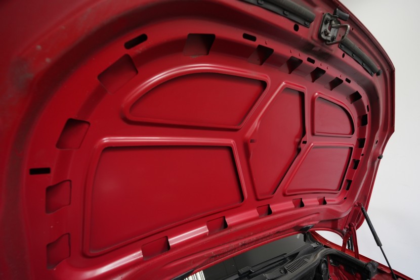 Капакът заглушаваме в два слоя - виброизолационен материал върху ламарината на капака и след това шумопоглъщащ материал Comfortmat Vision върху оригиналния капак на двигателя, благодарение на което запазваме желаната оригинална визия на моторния отсек. Друга област на шумоизолация в рамките на пакета Premium Plus са предните калници. Металната част на предните калници заглушаваме с мощен виброизолационен материал Comfortmat D4 с дебелина 4 мм и висок акустичен загубен фактор (MLF) с стойност 0,49. Предните пластмасови калници шумоизолираме с мембранен шумопоглъщащ материал Comfortmat Blockshot.