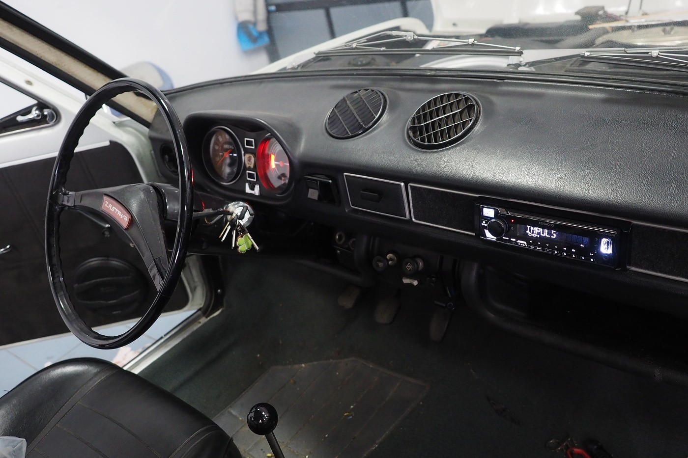В сервиза ни се появи интересна кола Zastava 1100 и искането беше монтаж на радио, високоговорители и звукоизолация. Със собственика избрахме най-продаваното радио Kenwood KMM-BT306 в комбинация с високоговорители Hertz CX 165. Те са интересни не само с звученето си, но и с позициониращия високочестотен говорител. Благодарение на насочването на високия говорител нагоре, дори коаксиалните високоговорители са в състояние да звучат над стандартното и да симулират компонентни системи с отделни високоговорители. Освен това шумоизолирахме пода, вратите и капака за намаляване на шума в купето.