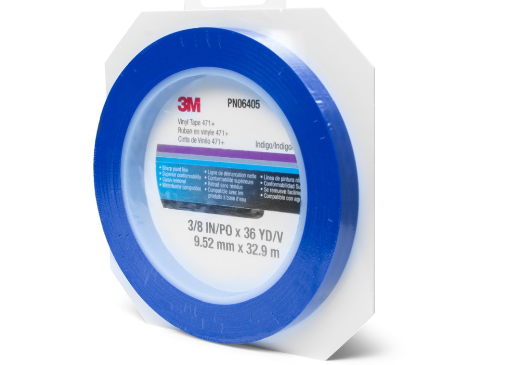 3M vinilna traka 471+ donosi performanse i produktivnost, stvarajući fine linije maskiranja u mnogim kritičnim primjenama bojanja i premazivanja. Oštre i čiste linije premaza za odvajanje boja moguće su jer je traka otporna na podizanje, a njezino svestrano gumeno ljepilo prianja na širok raspon površina, uključujući smole. Može se čisto ukloniti s ravnih ili složenijih površina. 3M vinilna traka 471+ ima svestrano gumeno ljepilo i blago prozirnu podlogu koja omogućuje precizno poravnanje maskiranja i usklađivanje s jednostavnim ili složenim uzorcima. Ova traka osigurava čisto uklanjanje bez ostataka ljepila, čak i nakon 30-minutnog ciklusa pečenja na 250 °F (121 °C). Traka je dizajnirana da se dobro prilagodi oblinama, rasteže i ostane sigurno pričvršćena, čak i s radijusom od približno 1,5". Prati nepravilne uzorke i stvara oštre linije. Njezina blaga prozirnost omogućuje dodatno poravnanje i prilagodbe kod uzoraka sa složenim oblinama. Ova fleksibilna vinilna podloga također je otporna na abraziju i štitit će susjedne površine tijekom većine operacija pjeskarenja. Nakon završetka, može se ukloniti u jednom komadu, pri čemu se zadržavaju oštre linije premaza koje je pomogla stvoriti.