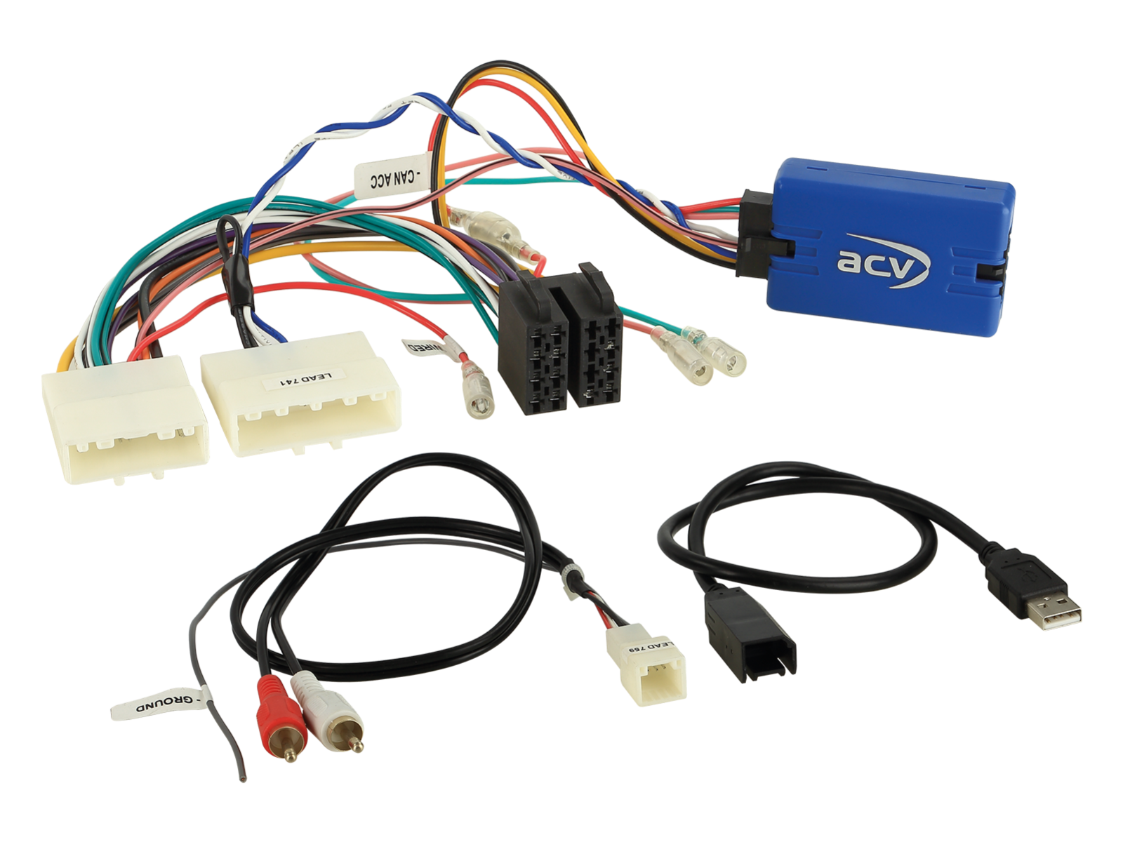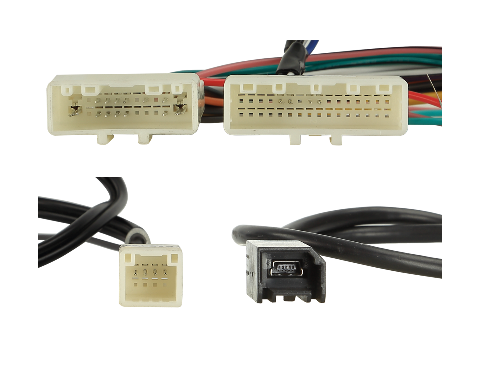 - Nissan Altima (L33) (06/2012->08/2018) s 20 Pin / 32 Pin Nissan konektorom, OEM AUX na cinch crvena/bijela i OEM USB na USB-A.