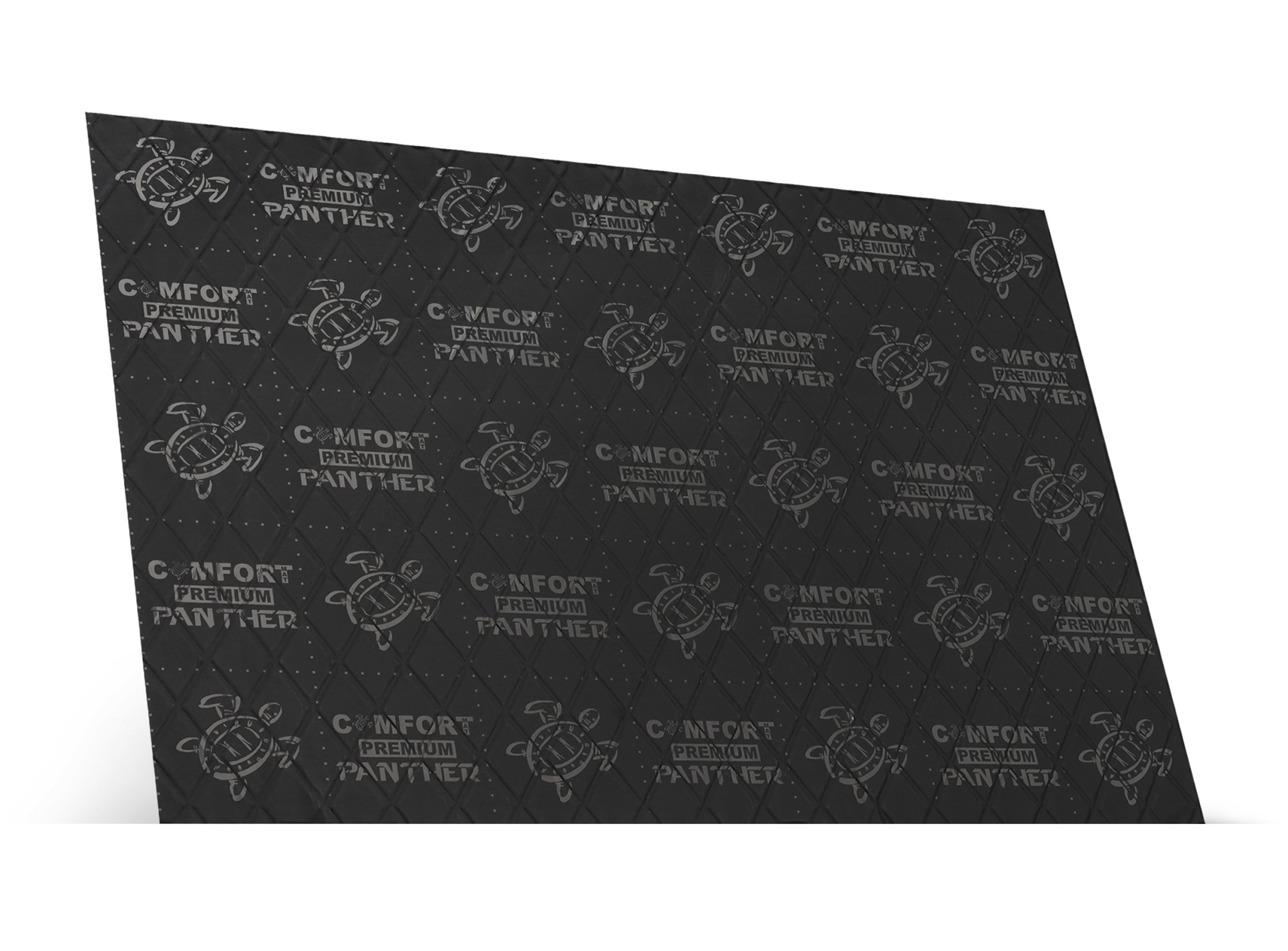 Comfortmat Panther je antivibracijski materijal iz Premium serije, čija je najveća prednost visoka učinkovitost. Panther je preuzeo sva najvažnija svojstva od Comfortmat Vespa antivibracijskog materijala, a njegov sastav je samo neznatno drugačiji, iako značajan za povećanje učinkovitosti. Panther koristi najnoviju generaciju poboljšanog Poison brtvila izrađenog od mješavine posebnih polimera, što omogućuje visoki faktor akustičnog gubitka, vrhunsko prianjanje na metal i širok raspon temperatura tijekom rada. Osim inovativnog brtvila, Panther je dobio daljnja poboljšanja u obliku Scale One aluminijske folije izrađene od inovativne legure, koja materijalu pruža neusporedivu čvrstoću i značajno povećava njegovu učinkovitost i stabilnost. Ova folija preuzeta je od naprednijeg Comfortmat Cobra materijala, a njezina debljina doseže 120 µm. Rezultat je faktor akustičnog gubitka od 0,38 jedinica, što osigurava savršeno sprječavanje vibracija, a zbog debljine i folije visoke čvrstoće materijal je pogodan i za ugradnju snažnijih audio sustava. Namjera je bila i stvoriti diskretan OEM dizajn bez prepoznatljivih boja za neupadljivu primjenu. Luksuzna kombinacija mat crne baze sa sjajnim crnim slovima osigurava jedinstven izgled koji odražava podrijetlo imena. Mat završna obrada također značajno poboljšava prianjanje s drugim slojem zvučne izolacije.