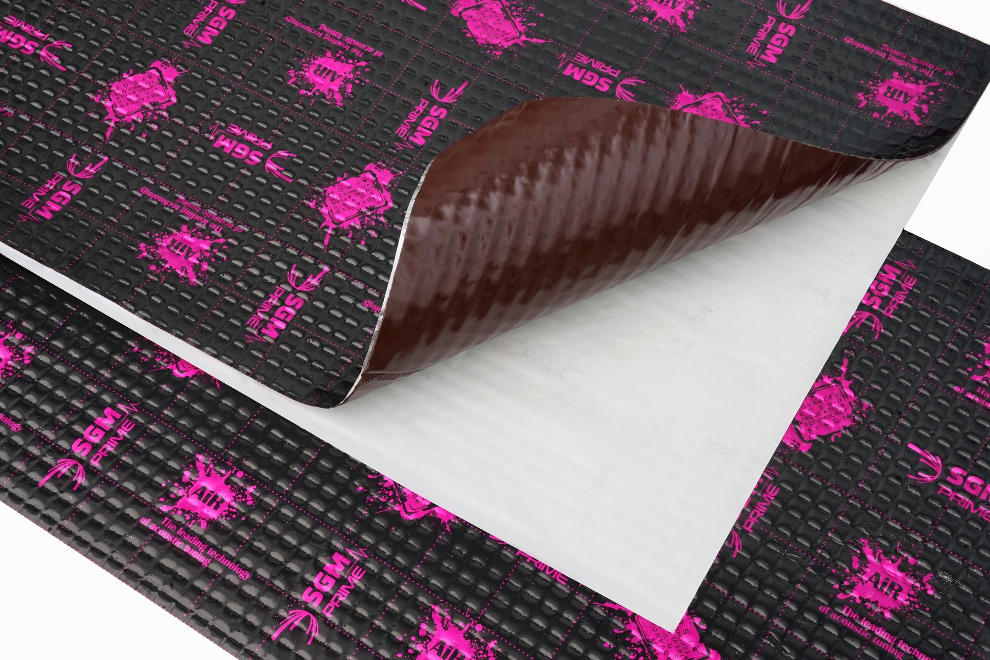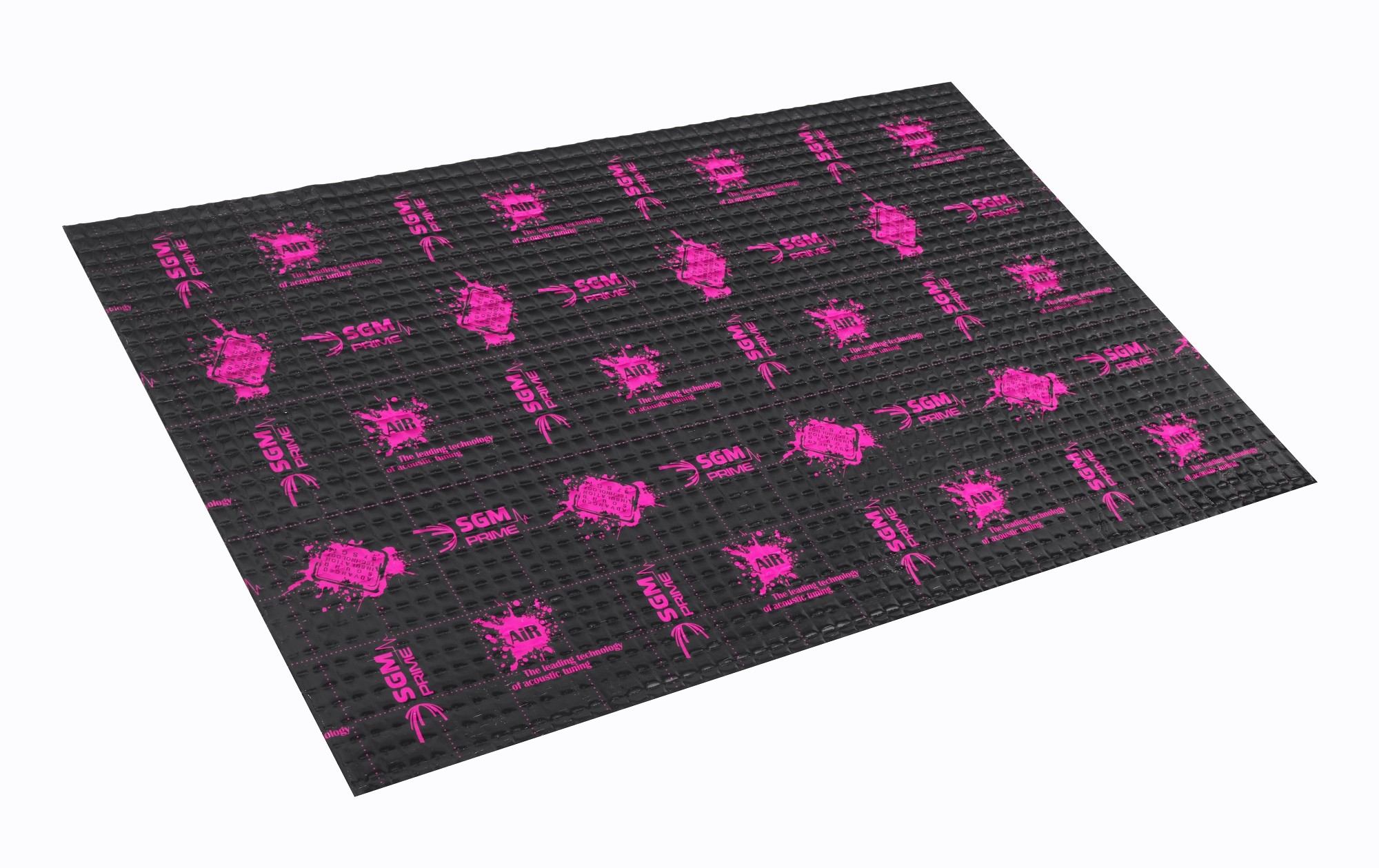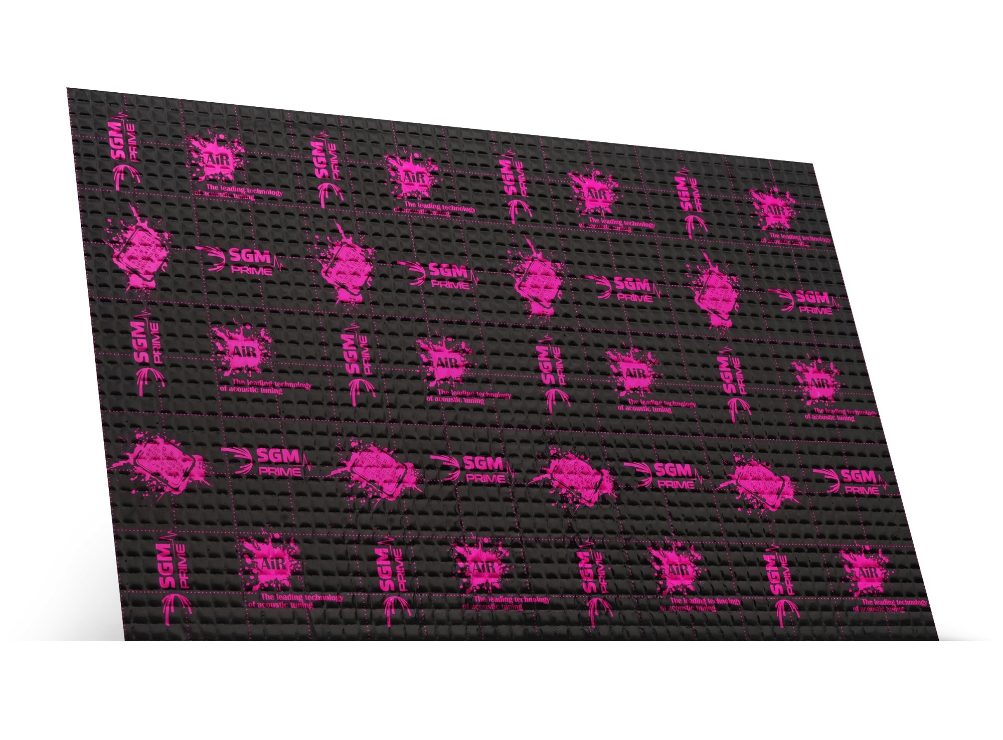 Vrhunski antivibracijski materijal iz najviše modelne linije Prime tvrtke SGM s izuzetno malom težinom. Potpuno nova formula gumene smjese ovog jedinstvenog antivibracijskog materijala omogućuje održavanje visokog faktora akustičnog gubitka (MLF) i stabilnosti u širokom rasponu temperatura uz održavanje vrlo male težine. Poseban sastav gumene smjese osigurava visoko prianjanje i učinkovitost materijala, a viskoplastična struktura SGM Air vrlo učinkovito prigušuje mikrovibracije karoserije. Aluminijska folija debljine 100 mikrona povećava čvrstoću i kostur materijala, kvadratni utisk i crna boja s modernim printom istaknut će se prilikom ugradnje u bilo koji automobil. Materijal je naravno otporan na vodu i ulja, ima antikorozivna svojstva i zadržava ista svojstva u svakom godišnjem dobu. Kao i svi antivibracijski materijali tvrtke SGM, materijali iz serije Prime otporni su na vodu, vlagu, ulja i ekstremne temperature te imaju antikorozivna svojstva.