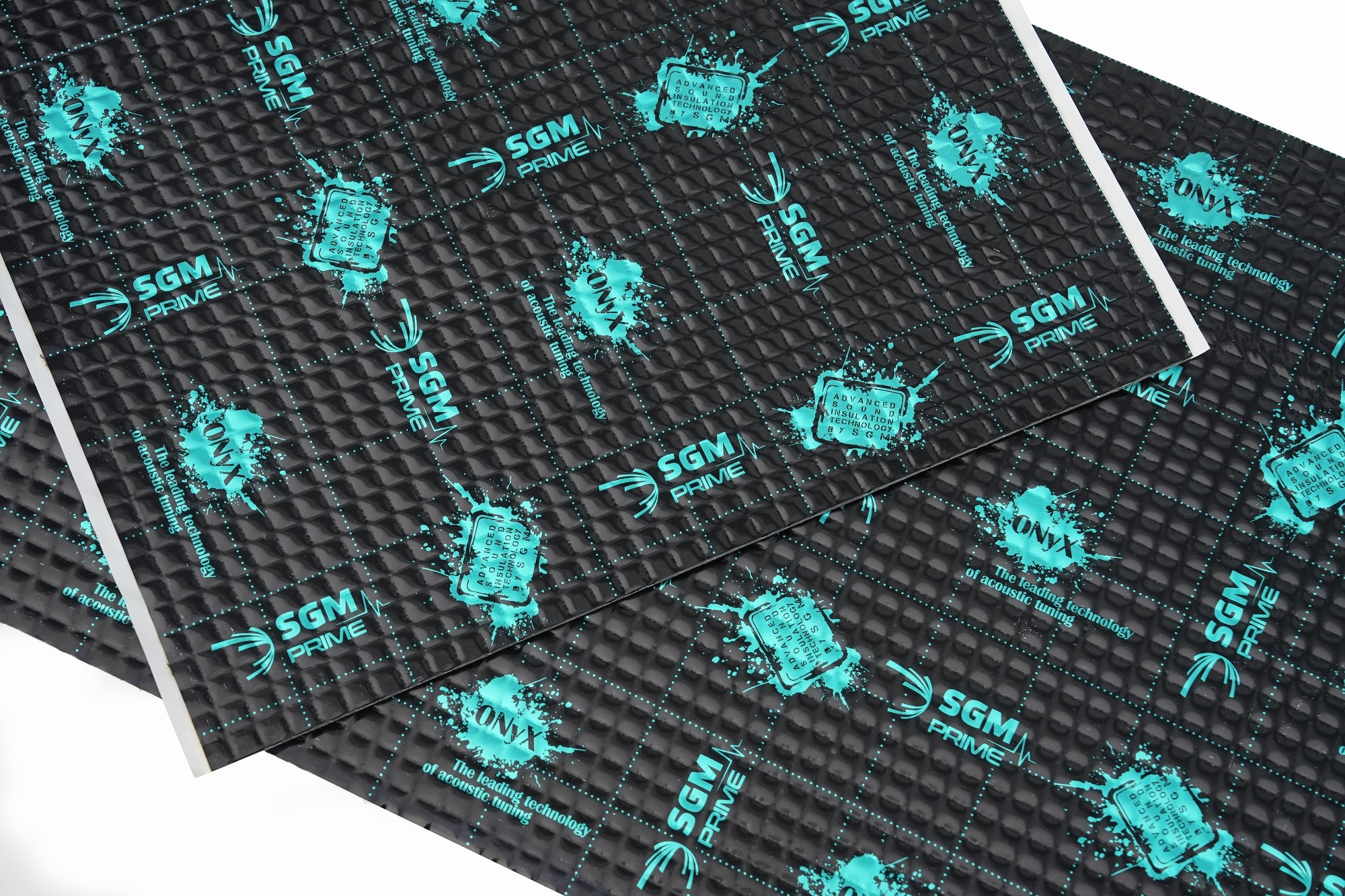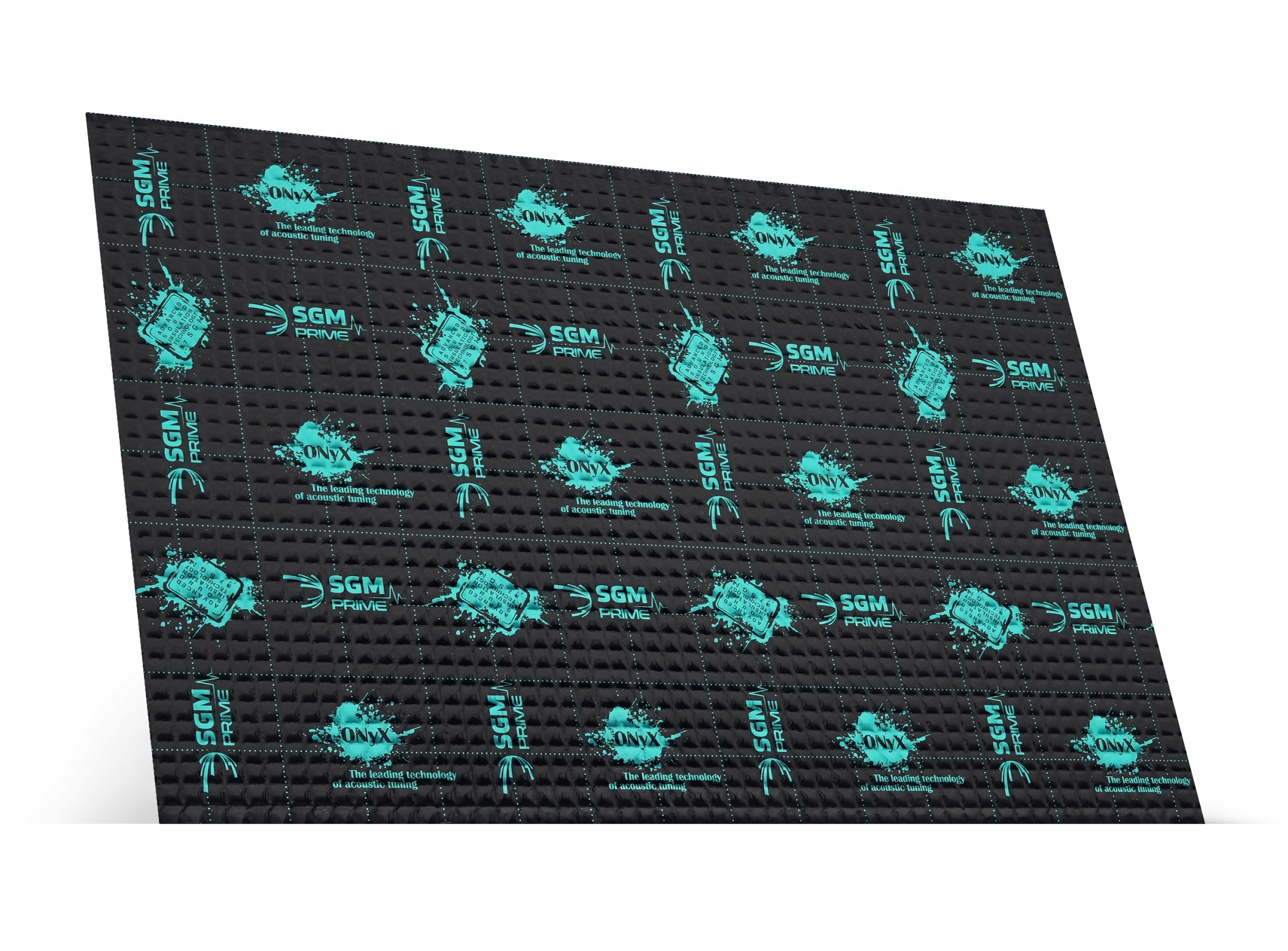 Antivibracijski materijal iz najviše modelne linije Prime tvrtke SGM, koji je među najmodernijim i najučinkovitijim antivibracijskim materijalima današnjice. Njegova visoka učinkovitost posljedica je ne samo viskozne elastične strukture brtvila najnovije generacije, već i aluminijske folije povećane debljine od 120 mikrona, što povećava čvrstoću i kostur materijala. Oniks je također izuzetan po tome što zadržava izvrsnu fleksibilnost čak i na vrlo niskim temperaturama ispod nule, koje su tipične za zahtjevne uvjete u Rusiji. Kvadratni reljef i crna boja s modernim tiskom istaknut će se prilikom ugradnje u bilo koji automobil. Faktor akustičnog gubitka s izvrsnom vrijednošću od 0,55 jedinica zajedno s debljinom od 4 mm omogućuje vrhunsku prevenciju vibracija. Kao i svi SGM antivibracijski materijali, materijali iz Prime linije otporni su na vodu, vlagu, ulja i ekstremne temperature te imaju antikorozivna svojstva.