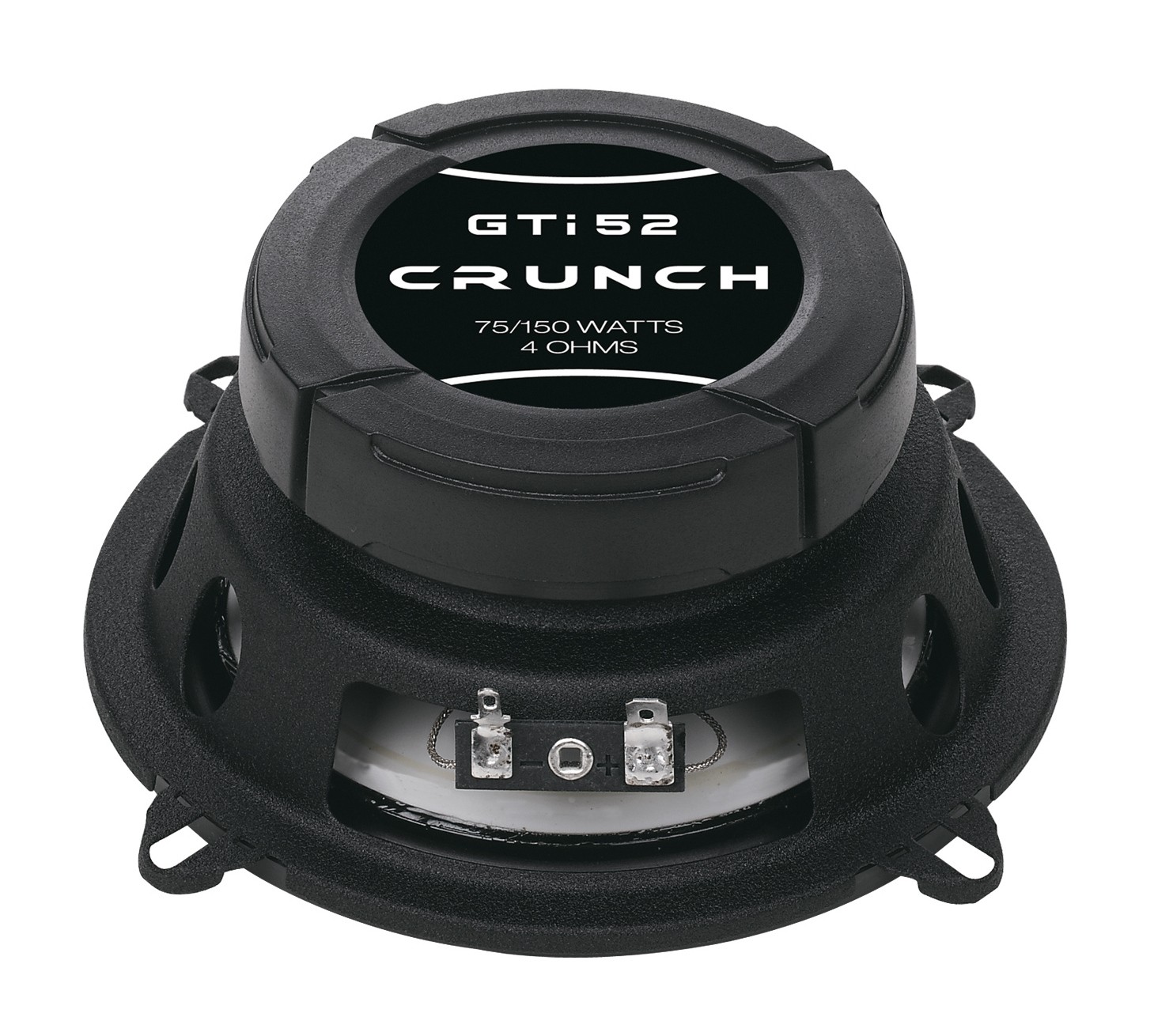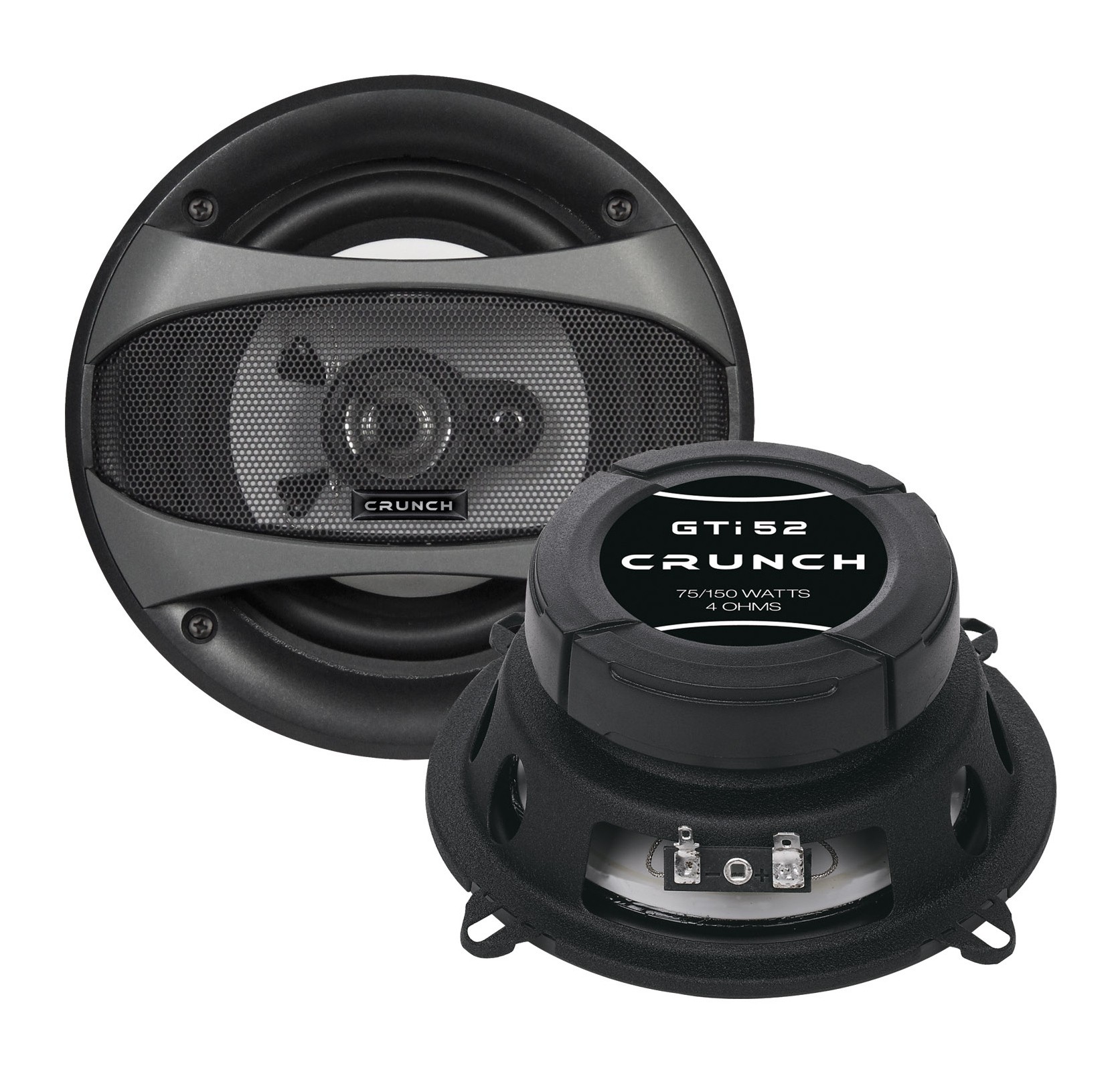 Koaksijalni zvučnici serije Crunch GTI dizajnirani su kao pristupačno rješenje za osnovno unaprjeđenje audio sustava vozila i izvrsno nadopunjuju pojačala iste marke. Serija privlači modernim izgledom s bijelim polipropilenskim membranama i dizajnerski obrađenim zaštitnim rešetkama, a istovremeno zadržava jednostavnu i funkcionalnu konstrukciju. Zahvaljujući srednjoj dubini ugradnje, zvučnici se mogu koristiti i na standardnim tvorničkim pozicijama bez potrebe za značajnijim preinakama vrata. U osnovi su srednjetonski pretvarači s polipropilenskom membranom smješteni u stabilnom čeličnom košu i dopunjeni robusnim magnetnim pokrovom. Za visoke tonove brinu 13 mm mylar visokotonci s neodimskim magnetom.
