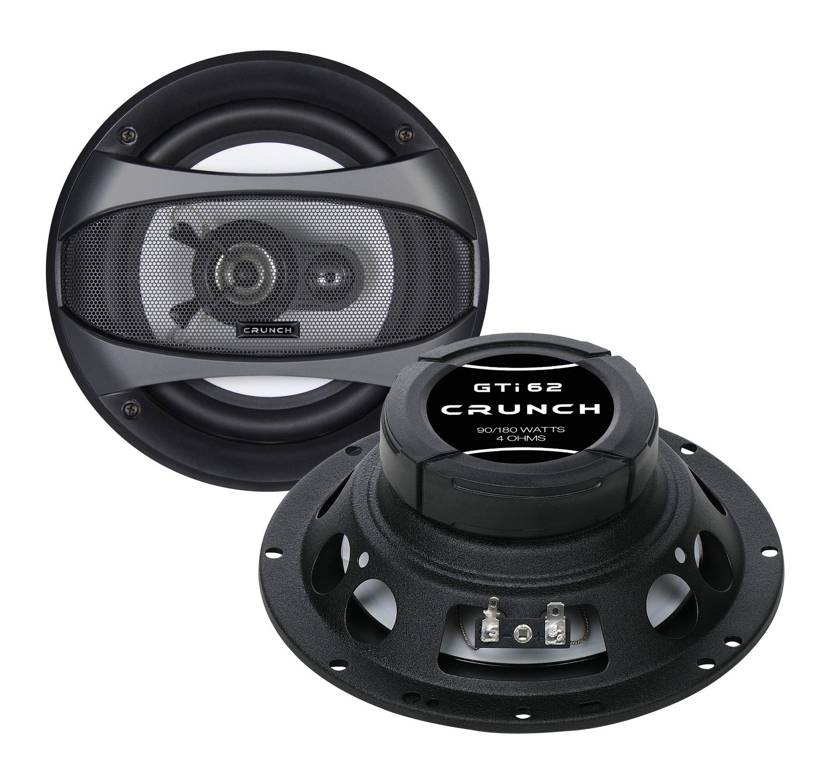 Koaksijalni zvučnici serije Crunch GTI dizajnirani su kao pristupačno rješenje za osnovno poboljšanje audio sustava vozila i izvrsno nadopunjuju pojačala iste marke. Serija se ističe modernim izgledom s bijelim polipropilenskim membranama i dizajnerski oblikovanim zaštitnim rešetkama, a istovremeno zadržava jednostavnu i funkcionalnu konstrukciju. Zahvaljujući srednjoj montažnoj dubini, zvučnici se mogu koristiti i na uobičajenim tvorničkim mjestima bez potrebe za većim preinakama vrata. U osnovi su srednjetonski pogoni s polipropilenskom membranom smješteni u stabilnom čeličnom košu i dopunjeni robusnim magnetskim pokrovom. Za visoke tonove brinu se 13 mm mylar visokotonci s neodimskim magnetom.