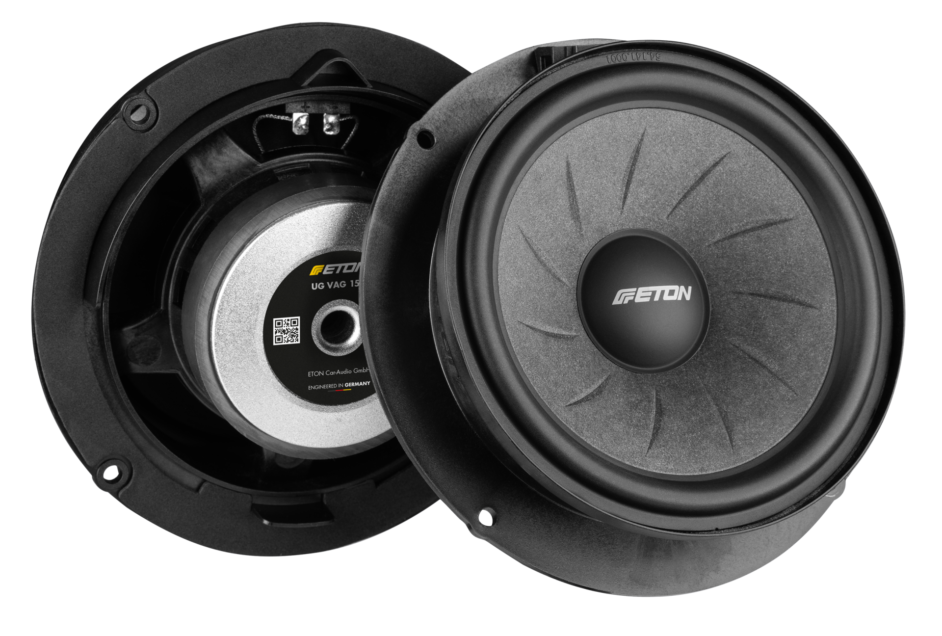 ETON nadogradnja zvuka za mnoge VW, Škoda ili Seat modele. 15 cm (6″) UG VAG 150 srednjetonski zvučnik s dugim dometom impresionira poboljšanom tehnologijom dijafragme i optimiziranim pogonskim sustavom za povećanu učinkovitost. UG VAG 150 nudi vrhunske performanse uz nenadmašan omjer cijene i performansi uz jednostavnu instalaciju. Zvučnik je 100% plug & play, tako da se može lako naknadno ugraditi, što je posebno važno za leasing vozila. UG VAG 150 se savršeno integrira u VAG modele bez ikakvih vidljivih promjena na vozilu. Sustav se lako spaja putem originalnog konektora. Novorazvijena dijafragma pruža značajno povećanje performansi, posebno u rasponu basa. Rebrasta dijafragma od papira ojačanog staklenim vlaknima proizvodi se posebnim proizvodnim postupkom, posebno je lagana i istovremeno izuzetno otporna na uvijanje. To je čini idealnom osnovom za visokokvalitetni zvučnik i osigurava snažan, zreo zvuk unatoč relativno maloj površini dijafragme. Bas se reproducira snažno s potrebnom dinamikom i preciznošću, munjevito brzi udarci niotkuda, konturirani i precizni. Glasovi su puni, prirodni i puni finih detalja. Iznimno jak feritni magnet s velikom polnom jezgrom pokreće dijafragmu velikom silom. Zahvaljujući impedanciji od 3 Ω, UG VAG 150 je posebno učinkovit čak i u kombinaciji s OEM radio uređajima / glavnim jedinicama bez dodatnog pojačala. Zvučni tlak od 89 dB i glazbena snaga od 80 W - "govori samo za sebe". Košara izrađena od poliamida ojačanog staklenim vlaknima s integriranom brtvenom prirubnicom posebno je niske rezonancije, otporna na torziju i savršeno pristaje. Zahvaljujući specifičnoj VAG 4-točkovnoj montaži i karakterističnom VAG konektoru, UG VAG 150 je jednostavan za instalaciju. Paket uključuje opcionalne niskofrekventne skretnice koje omogućuju optimalno podešavanje zvuka u vozilu. UG VAG 150 je idealan za kombinaciju s ETON UG VAG 25 setom visokotonaca i odgovara raznim VAG modelima: T6.1, Polo V, Golf 6 stražnji, E-Golf, Golf 8, Tiguan II stražnji, T-Roc, T-Cross, Caddy i mnogim drugima.