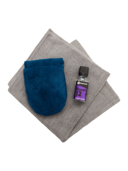 - Kompletan set Ewocar Boost+ 30 ml spreman za upotrebu (premaz, aplikator i krpa od mikrovlakana kratkog vlakna).
