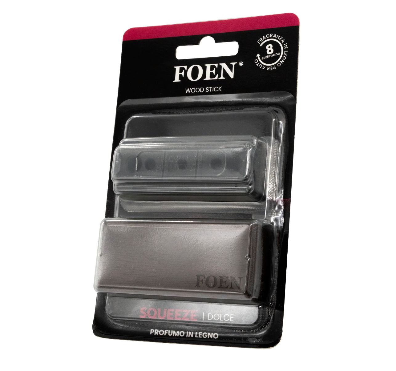 Foen Wood Stick je premium osvježivač zraka za auto u obliku klipa, izrađen od orahovog drveta. Namijenjen je za pričvršćivanje na ventilacijski otvor vozila. Njegov miris se oslobađa putem zamjenjivog punjenja - polimernih granula natopljenih pažljivo kreiranom mirisnom kompozicijom. Dostupne su 3 nove mirisne note.