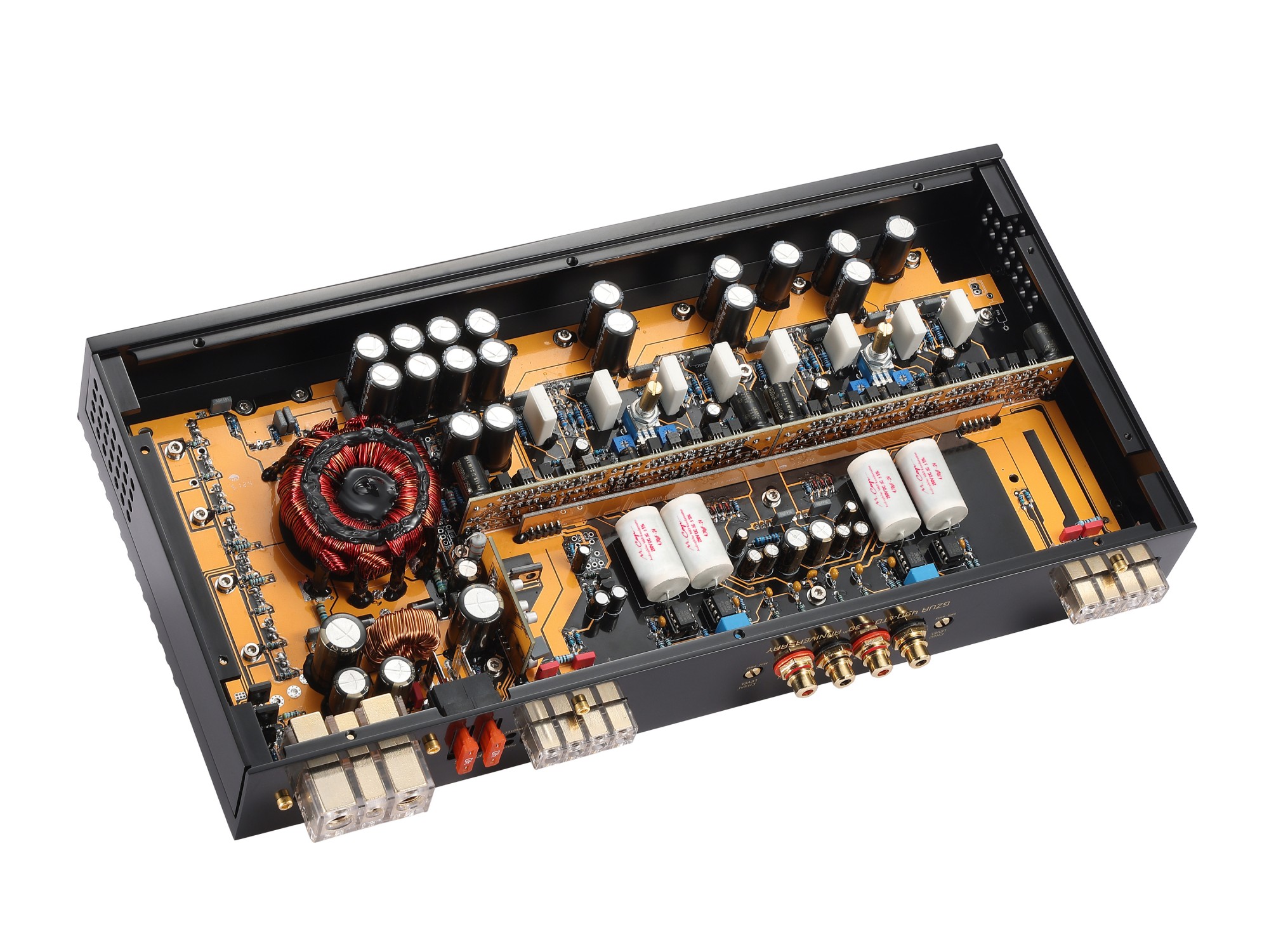 - Premium audio kondenzatori MUNDORF® i kvalitetni izlazni tranzistori.