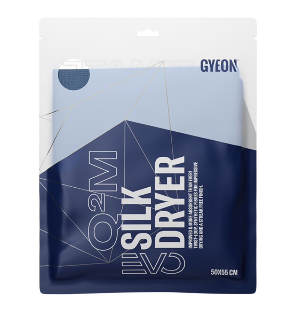 Gyeon Q²M SilkDryer EVO je ažurirana i poboljšana verzija jednog od najinovativnijih ručnika za sušenje marke Gyeon. U usporedbi s originalnom verzijom (predstavljenom 2015. godine), EVO varijanta ima povećanu gramaturu od 530 g/m². Ukupna upijajuća moć je do 50% veća nego u prošlosti. Model EVO ima rubove smanjene na apsolutni minimum tako da je ručnik još funkcionalniji i sigurniji na osjetljivim pločama složenih oblika. Kvaliteta pribora koji se koristi u njezi automobila izuzetno je važna. Kvaliteta mikrovlakana, njegovi rubovi i šavovi, upijajuća moć ručnika i njegova otpornost na desetke ciklusa pranja određuju rezultate svakog procesa detaljiranja. Proizvodi od mikrovlakana koriste se u pranju, dekontaminaciji, sušenju, poliranju, radu s keramičkim premazima i održavanju svakog pojedinog elementa vozila. Mogu ubrzati i pojednostaviti svaku aktivnost ili u konačnici uništiti konačni rezultat. Zato Gyeon nudi neke od najboljih proizvoda od mikrovlakana za automobilsku industriju.