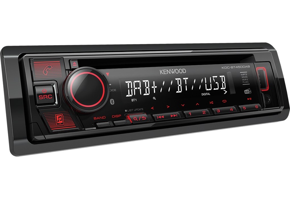 Entuzijasti će obožavati široku podršku formata na CD-u i USB-u, uključujući npr. FLAC. DAB+ digitalni radio podržava mnogo više stanica, a one mogu biti puno više kvalitete od FM-a. Bluetooth za hands-free i streaming glazbe ili mogućnost korištenja pametnog telefona kao bežičnog upravljača. Jednostavno podešavanje zvuka također je moguće zahvaljujući 13-pojasnom EQ-u s digitalnim korekcijama zvuka.Opće specifikacije autoradija Kenwood KDC-BT450DAB