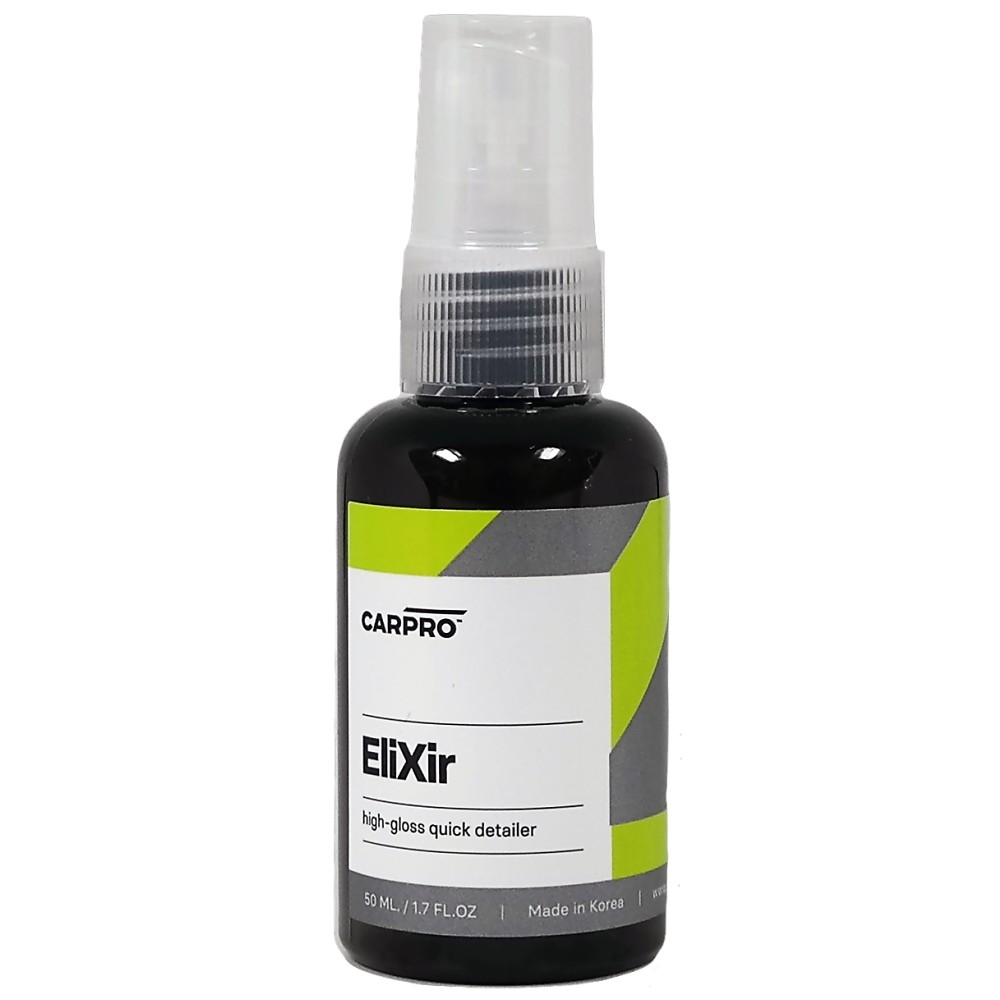 Zamislite Quick Detailer koji se nanosi jednako lako kao CarPro ECH2O , super je hidrofoban i traje tjednima! CarPro EliXir je mješavina nanotehnologija koje stvaraju zrcalni duboki sjaj i poboljšavaju svaku nijansu boje. Pogodan je ne samo za boju, već i za sve ostale površine - plastične dijelove, staklo i kotače. Nastao je kombiniranjem tehnologija triju izvrsnih proizvoda (ECH2O, Reload i HydrO2), koji imaju jednu zajedničku stvar - naglasak na maksimalnim rezultatima uz minimalan napor. EliXir može ostaviti zaista prekrasan izgled na boji. Dubina sjaja, plastičnost i zasićenost boje mogu se usporediti s najboljim keramičkim premazima. Međutim, potrebno je nekoliko minuta i znatno manje novca da se postigne ovaj rezultat. Sjaj obično ide ruku pod ruku s vodoodbojnošću, a CarPro EliXir u tom pogledu briljira. Koristite ga nakon sljedećeg pranja automobila i bit ćete iznenađeni koliko lako i brzo možete postići izvrsne rezultate. Za razliku od jednokratnih detaljera u spreju, ovaj proizvod zadržava jedinstvenu svestranost koju očekujete od brzog detaljera. Osim zaštitne funkcije, ima svojstva čišćenja i podmazivanja, pa ga možete koristiti i za čišćenje prašnjavih površina, uklanjanje otisaka prstiju ili osušenih mrlja od vode nakon pranja automobila. EliXir je također prikladan kao super sustavna njega za automobile tretirane keramičkom zaštitom laka, ali i kao osnovna i brza zaštita laka koja nadmašuje voskove sa znatno zahtjevnijom upotrebom. Sve ga to čini idealnim proizvodom za korištenje nakon svakog pranja automobila. Pokušajte koristiti EliXir na mokrom automobilu nakon pranja i možete se veseliti lakšem sušenju s boljim rezultatima bez stvaranja tvrdih mrlja od vode. Pogodan je ne samo za lak, već i za sve ostale površine poput plastičnih dijelova, stakla i kotača.Glavne značajke