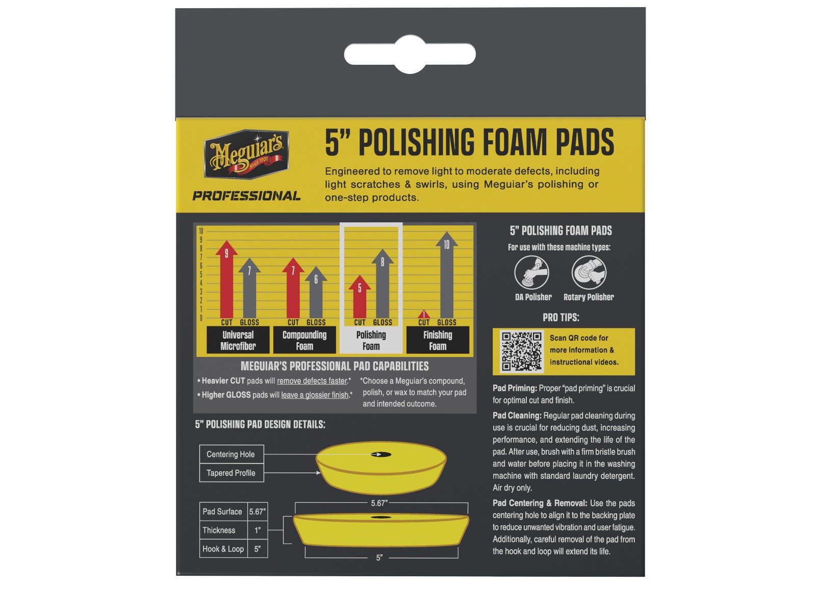 Meguiar’s Professional Polishing Foam Pad su vrhunski pjenasti polirni diskovi namijenjeni poliranju i nježnoj korekciji laka. Ovi diskovi učinkovito uklanjaju blaga do srednja oštećenja laka poput finih ogrebotina, oksidacije, holograma i tragova od kisele kiše, a istovremeno ostavljaju površinu glatkom i visokosjajnom bez novih oštećenja. Zahvaljujući naprednoj pjenastoj tehnologiji postiže se ravnomjeran pritisak i stabilan radni učinak. Diskovi su kompatibilni s rotacijskim i orbitnim polirnim strojevima, kao i s adapterom za bušilicu, te su ponovno upotrebljivi zahvaljujući mogućnosti pranja nakon upotrebe.