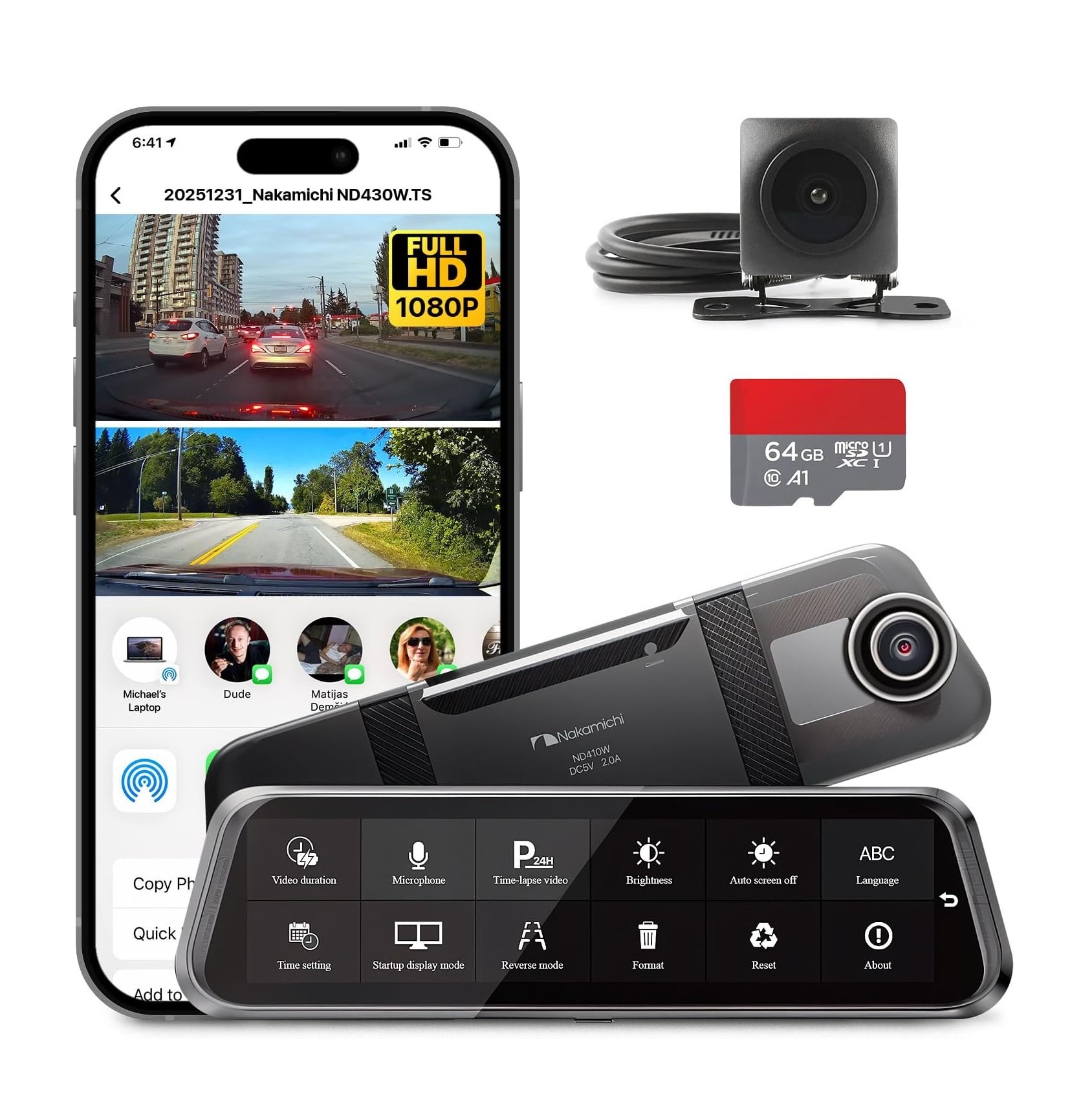 DVR kamera za snimanje u retrovizoru + stražnja kamera, 9,3" zaslon osjetljiv na dodir, Full HD rezolucija, kut gledanja 170° + 140°