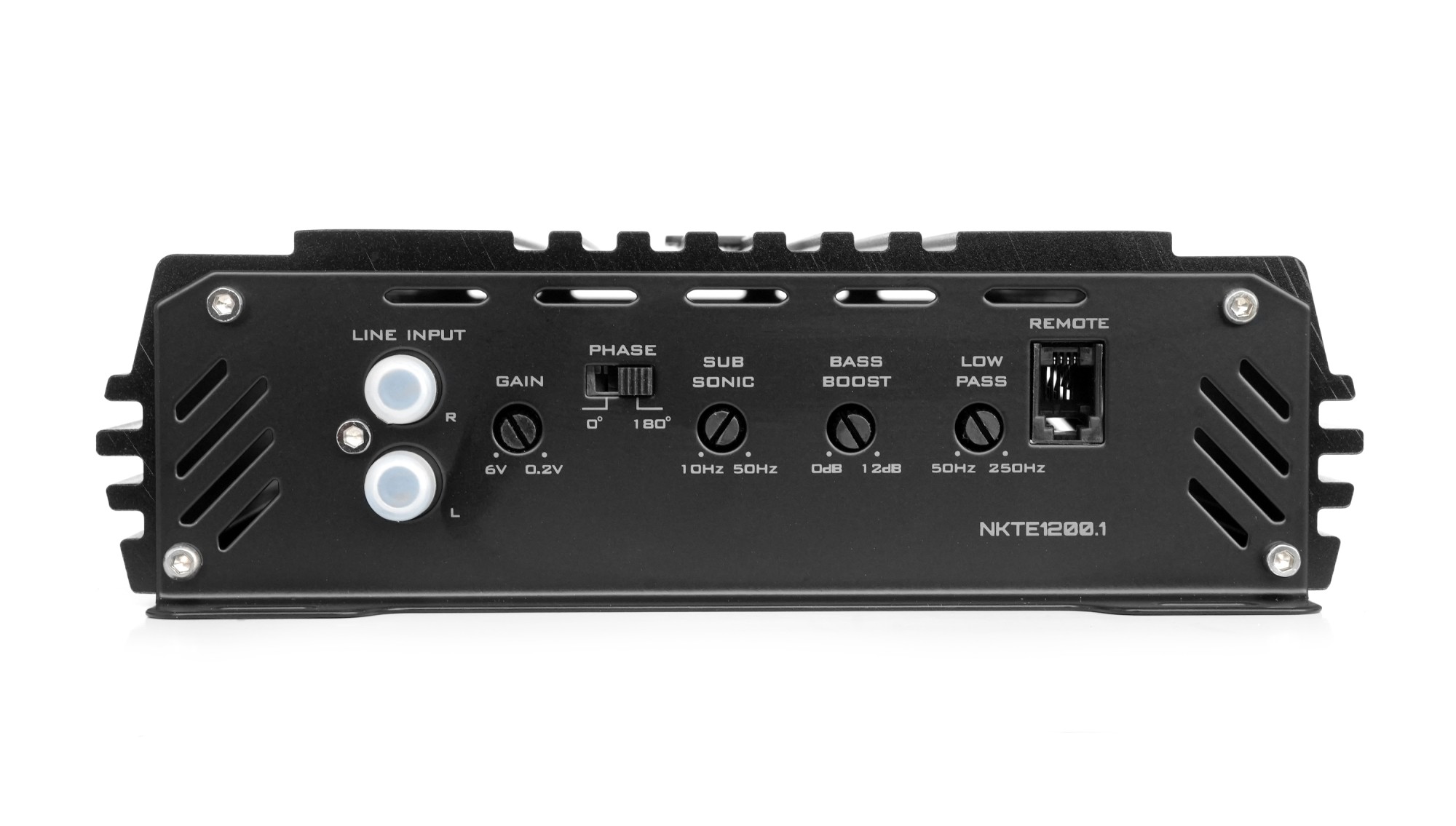 Nakamichi NKTE1200.1 je 1-kanalno pojačalo koje radi u klasi AB, dizajnirano za korisnike koji traže uravnotežen odnos snage, kvalitete zvuka i pouzdanosti. Konstrukcijski i zvučno cilja na klasične instalacije gdje se stavlja naglasak na čistu reprodukciju, dobru dinamiku i prirodan karakter. Pojačalo nudi visoku snagu do 1200 W RMS pri impedanciji 1 Ω, što omogućuje fleksibilnu primjenu – od napajanja vrlo snažnih subwoofera. NKTE1200.1 je opremljen niskopropusnim filtrom, subsonic filtrom i pojačanjem basa za precizno podešavanje subwoofera. Elementi za upravljanje su pregledno raspoređeni i omogućuju jednostavno podešavanje pojačanja i filtracije bez potrebe za dodatnom elektronikom, što će posebno cijeniti instalacije bez DSP procesora. Konstrukcija pojačala izvedena je u čvrstom aluminijskom kućištu koje služi ne samo kao mehanička zaštita, već i kao učinkovit hladnjak. Rebrasti dizajn gornjeg dijela osigurava dobar odvod topline i stabilan rad čak i pri dugotrajnom opterećenju. Zahvaljujući kompaktnim dimenzijama, pojačalo je pogodno za ugradnju u ograničenim prostorima, npr. ispod sjedala ili u bočnim odjeljcima prtljažnika.