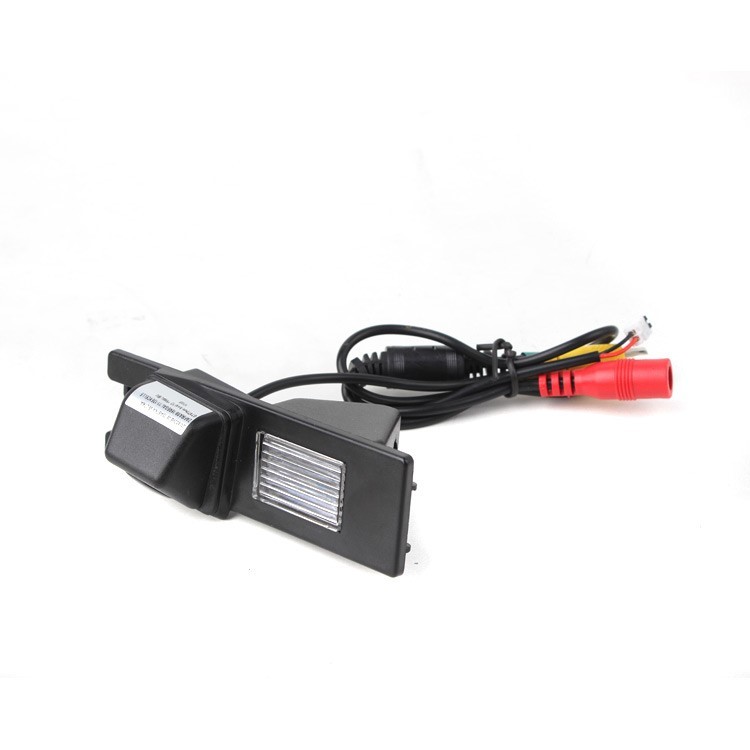 OEM kamera za parkiranje u boji za ugradnju umjesto stražnjeg svjetla registarske pločice. Kamera uključuje mjesto za postavljanje grla žarulje iz originalnog svjetla registarske pločice.