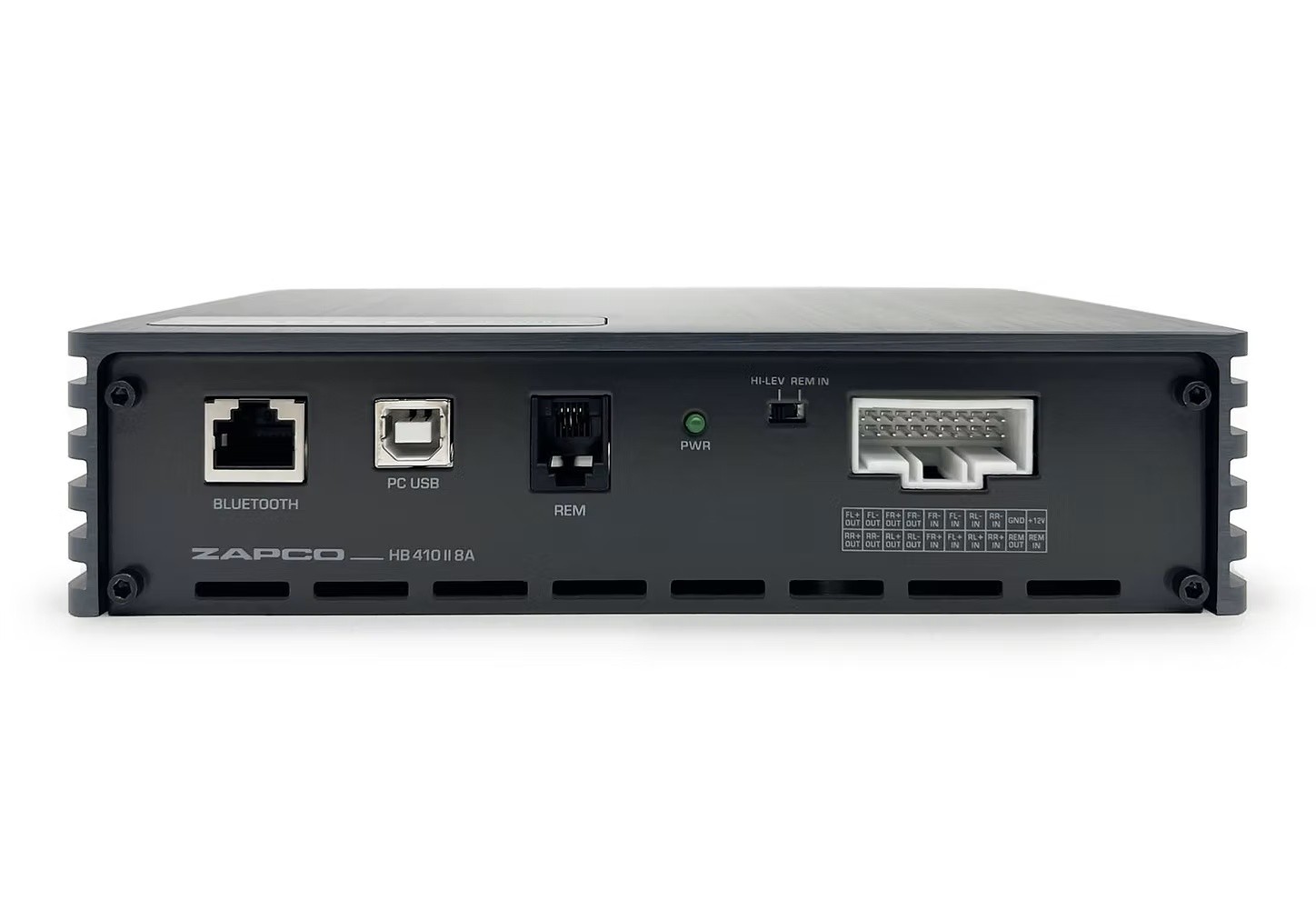Zapco HB 410 II 8A je 8‑kanalno pojačalo s integriranim 10‑kanalnim DSP procesorom koje kombinira izvanrednu kvalitetu zvuka s kompaktnom konstrukcijom i jednostavnom ugradnjom. Nudi 31‑pojasni ekvilajzer za detaljno podešavanje akustike, napredno usmjeravanje signala, podesiva kašnjenja, razine, polaritet i tip filtriranja. Zahvaljujući integriranom Bluetooth 5.1 modulu omogućuje bežično streamanje glazbe, a nova mobilna aplikacija omogućuje potpuno upravljanje sustavom iz pametnog telefona. Ugrađeni glazbeni plejer omogućuje reprodukciju zapisa s USB uređaja uključujući i lossless formate. Zapco HB 410 II 8A tako predstavlja univerzalno rješenje za nadogradnju tvorničkih audio sustava s maksimalnom kontrolom i čistim zvukom.