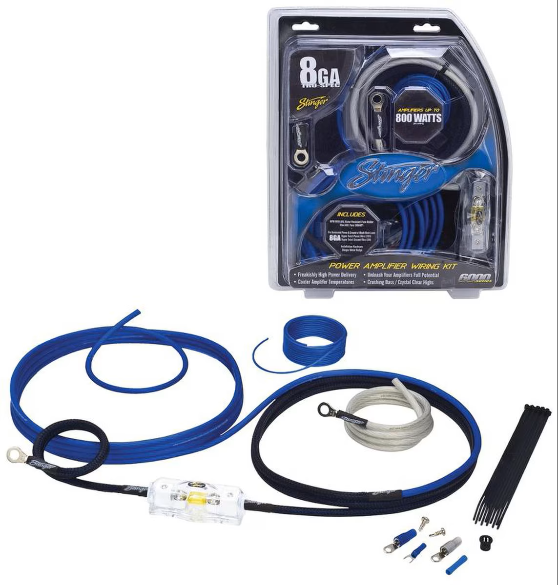 Visokokvalitetni vrhunski komplet napajanja s kabelom za napajanje od 8,4 mm² za ugradnju pojačala do maks. 800 W. Stinger kompleti kabela su definitivno među najboljima koje danas možete kupiti.Glavne značajke