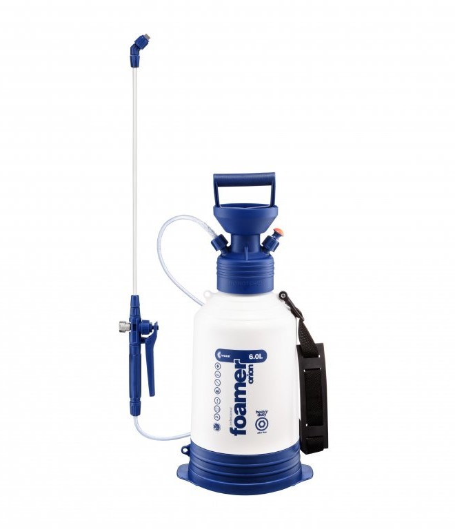 Tlačna prskalica iz serije Heavy Duty namijenjena je za nanošenje koncentrata pjene. Omogućuje brzo i precizno pokrivanje površine gustom pjenom. Savršena je za pranje automobila u radionici - savršeno funkcionira pri prvom pranju automobila. Koristi se za čišćenje podova, zidova, stropova, sanitarnih prostorija, prozora, obojenih površina i drugih površina gdje se koriste sredstva za pjenjenje. Orion pjenilica opremljena je mlaznicom od 50 cm i udobnim remenom za nošenje, što pruža poboljšanu udobnost tijekom dugotrajne primjene. Ima sigurnosni ventil koji pomaže u regulaciji tlaka unutar spremnika, štiteći ga od mogućih oštećenja i time osiguravajući sigurnost rada. Također ima stabilizacijsku bazu koja, osim što stabilizira spremnik, štiti ga od mehaničkih oštećenja. Baza ima posebne nožice koje olakšavaju pumpanje prskalice. Dizajn glave omogućuje precizno doziranje tekućine. Ima FPM brtvu.Glavne značajke