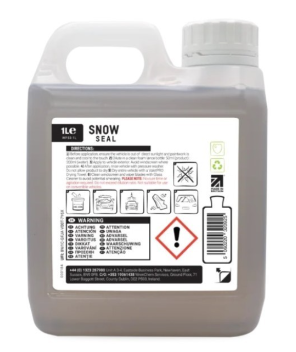 ValetPRO Snow Seal je posebno formuliran zaštitni premaz za upotrebu s pištoljem za pjenu i peračem pod tlakom. Snow Seal prekriva vaše vozilo trajnim hidrofobnim premazom koji rezultira željenim i popularnim efektom kapanja. Snow Seal također ostavlja impresivno sjajnu završnu obradu laka. Nanošenje ne može biti jednostavnije - jednostavno poprskajte po čistom vozilu u preporučenom razrjeđenju, isperite i zatim osušite.Glavne značajke