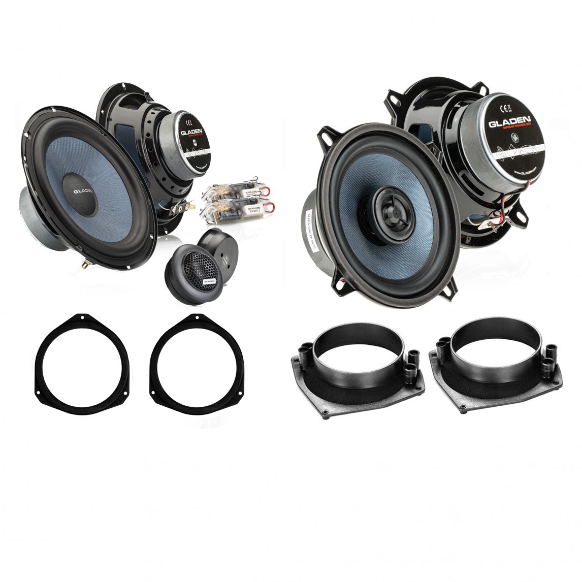 Zvučnici dizajnirani za poboljšanje zvučnog sustava Fiat Grande Punto, Punto Evo, Punto. Ovaj set zvučnika karakterizira visokokvalitetan zvuk, izrada i jednostavna ugradnja bez potrebe za intervencijom u unutrašnjosti ili električnim instalacijama vozila. Ovaj set uključuje sljedeće proizvode:- Gladen Alpha 165 komponentni zvučnici za prednja vrata.
