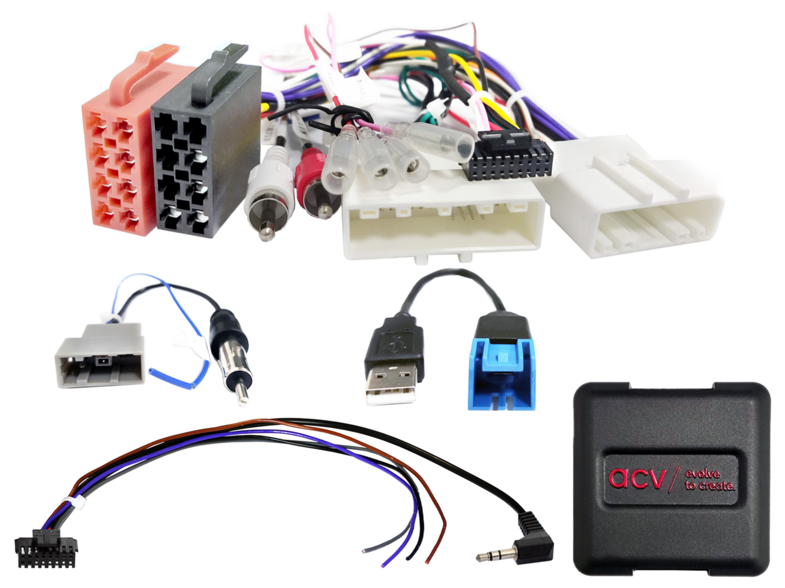 - Konektor: OEM AUX > RCA(m) červený/bílý.