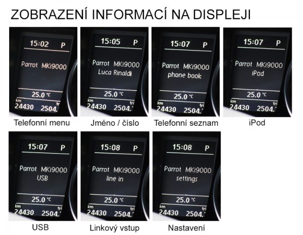 adaptér pro ovládání HF Parrot z volantu + display VW / Škoda