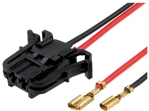Adaptér se na jedné straně skládá z konektoru, na opačné straně jsou klasické fastony (úzký + široký). Délka kabelu mezi oběma koncovkami je +- 13 cm. Cena za 2 ks.