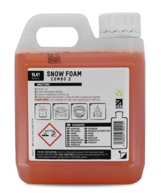 ValetPRO Snow Foam Combo 2 je vysoce pěnivá, alkalická aktivní mycí pěna. Není ovšem šetrná k voskům, proto je vhodné ji používat u vozidel, která nejsou navoskovaná. Jde o silný čistič, který skvěle odstraní většinu nečistot, ale stejně tak dokáže odstranit i přírodní vosk. Když se použije s nástavcem na hustou pěnu, vytvoří silnou vrstvu sněhové pěny, která prodlužuje dobu kontaktu s povrchem vozu, zatímco pracuje při pronikání do špíny. Tato alkalická pěna je také ideální na odstranění olejových, benzínových i naftových skvrn. Pomáhá také odstranit vrstvu vosku, takže se dá použít na kompletní dekontaminaci vozu před leštěním nebo novým voskováním. Tato aktivní pěna poskytuje skvělý výkon za výhodnou cenu.