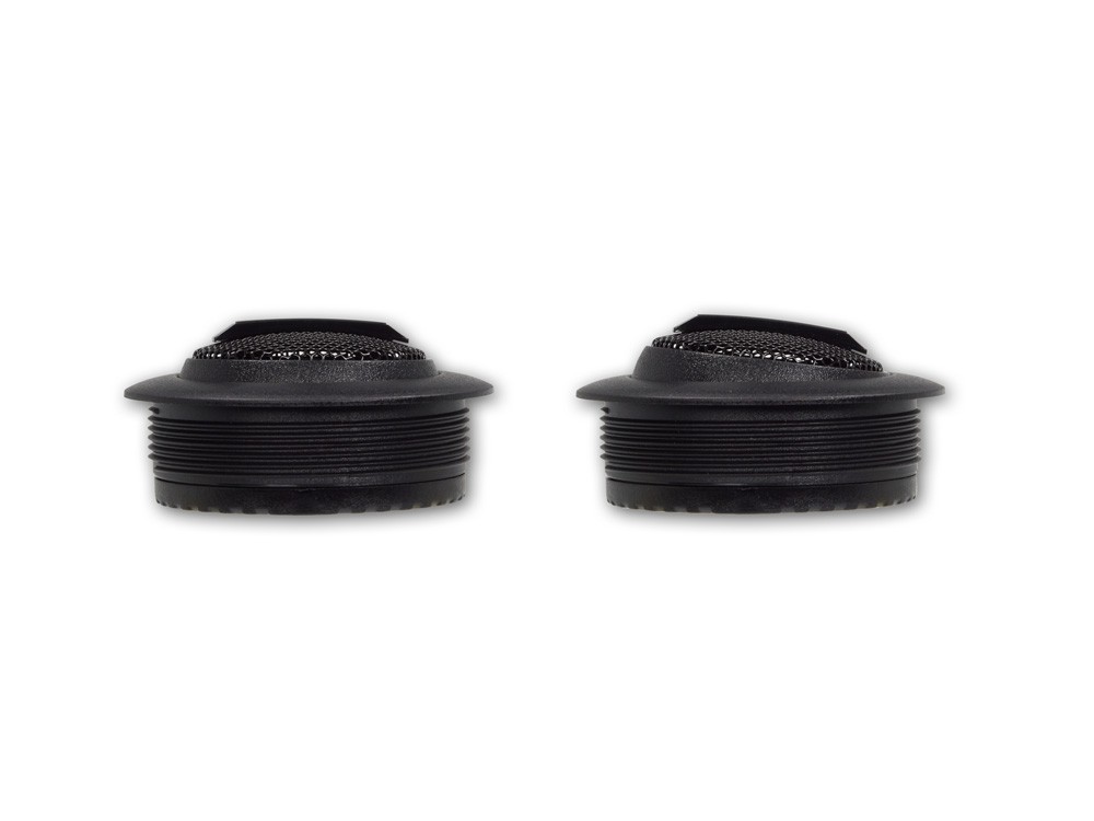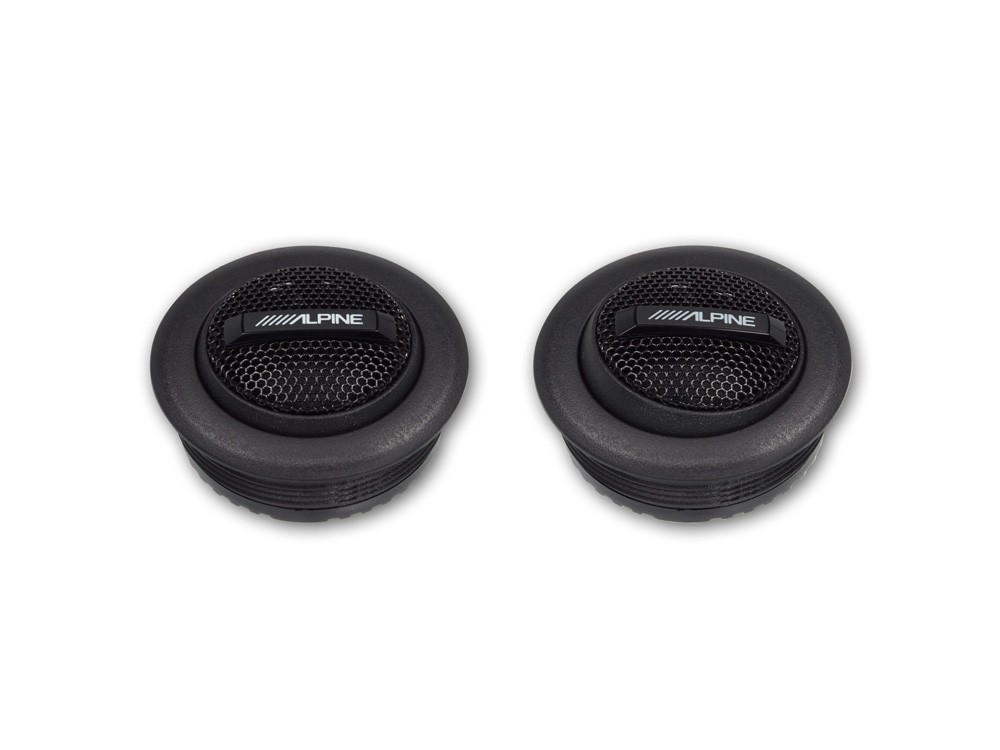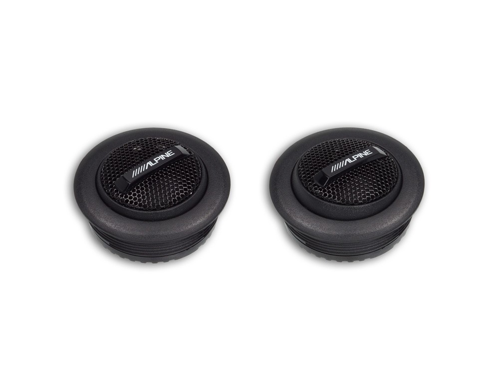 | Typ reproduktorůKoaxiální reproduktory: Koaxiální reproduktory se vyznačují konstrukcí tzv. vše v jednom. Výškový a středobasový reproduktor jsou v jednom koši. Výhodou je jednodušší montáž, ale díky spojení resp. blízkosti pásem v jednom reproduktoru, se obvykle sníží kvalita zvuku. Zpravidla uprostřed středobasového reproduktoru, je výškový reproduktor, jehož kmitací cívka pracuje ve druhé vzduchové mezeře společného magnatického obvodu. Třípásmový koaxiální reproduktor se skládá ze středobasového reproduktoru, ve předu na zvláštním nosníku je středový reproduktor a samostatný výškový. Komponentní reproduktory: Komponentní reproduktory se vyznačují rozdělením na jednotlivá frekvenční pásma, výškové + středobasové + popř. basové pásmo. Jednotlivé reproduktory se dají umístit zcela odděleně, což má za výsledek lepší zvukový i akustický projev. V drtivé většině případů komponentních reproduktorů je dodávaná i externí výhybka, která rozděluje výškové, středové / středobasové a u třípásma i basové pásmo popř. umožňuje nastavení decibelové úrovně u výškového reproduktoru (např. +2 dB, 0 dB, -2 dB), strmosti (např. 6dB/Okt. 12dB/Okt.) či aktivní nebo bi-amp zapojení. | Výškové |