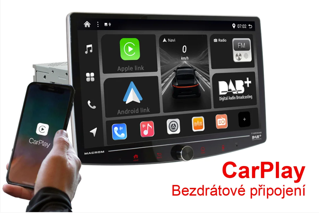 Macrom T1003DAB - 10″ Android multimediální stanice s CarPlay, Android Auto a DAB+