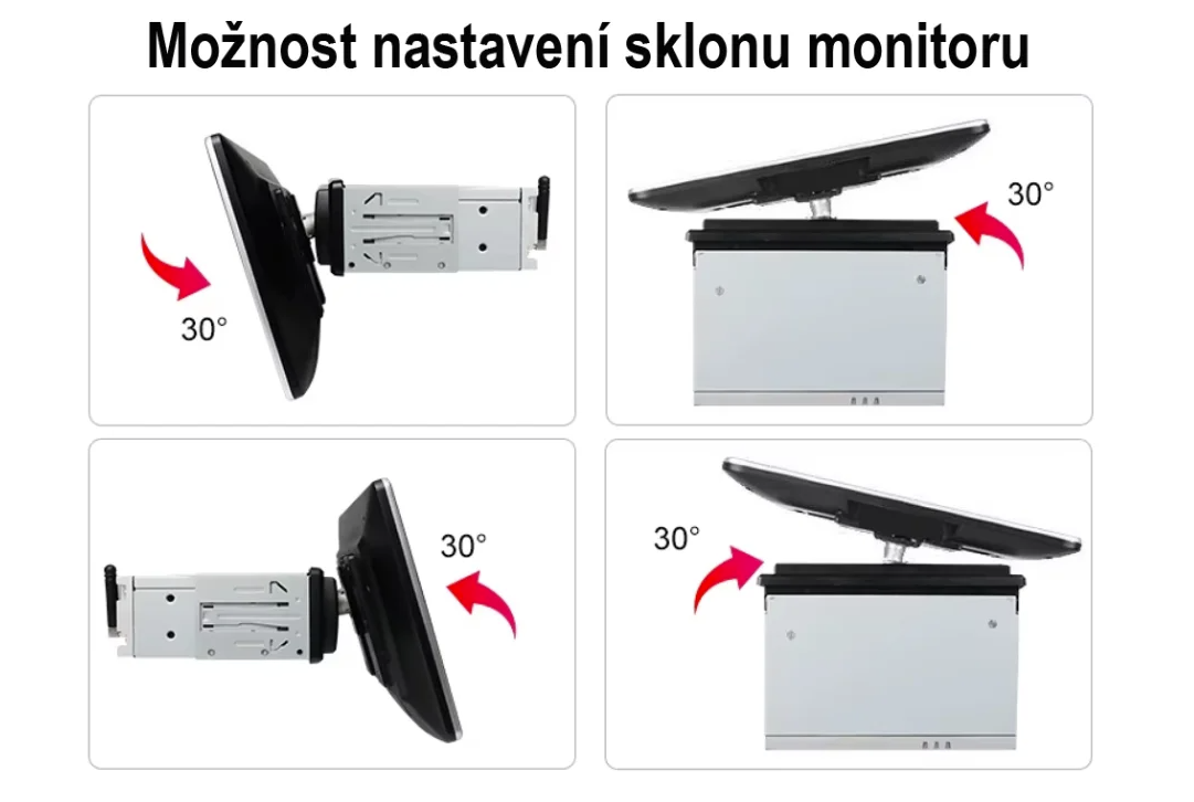 - 10″ QLED Full HD displej (1920 × 1080 px), otočný a výškově nastavitelný.