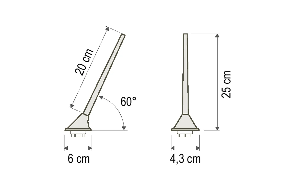 - Rozměry základny: 6 x 4,3 cm.