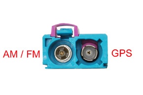 - anténní adaptér pro připojení navigace s dvojitým FAKRA konektorem do automobilů s ISO autoanténou pro autorádio a SMB nebo FAKRA anténou pro GPS navigaci