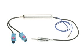 Anténní napáječ pro automobily s anténou se zesilovačem napájeným po anténním svodu (fantomové napájení). Používá se při instalaci neoriginálního autorádia.- anténní konektor od antény v automobilu FAKRA (samice) 2x samostatný konektor