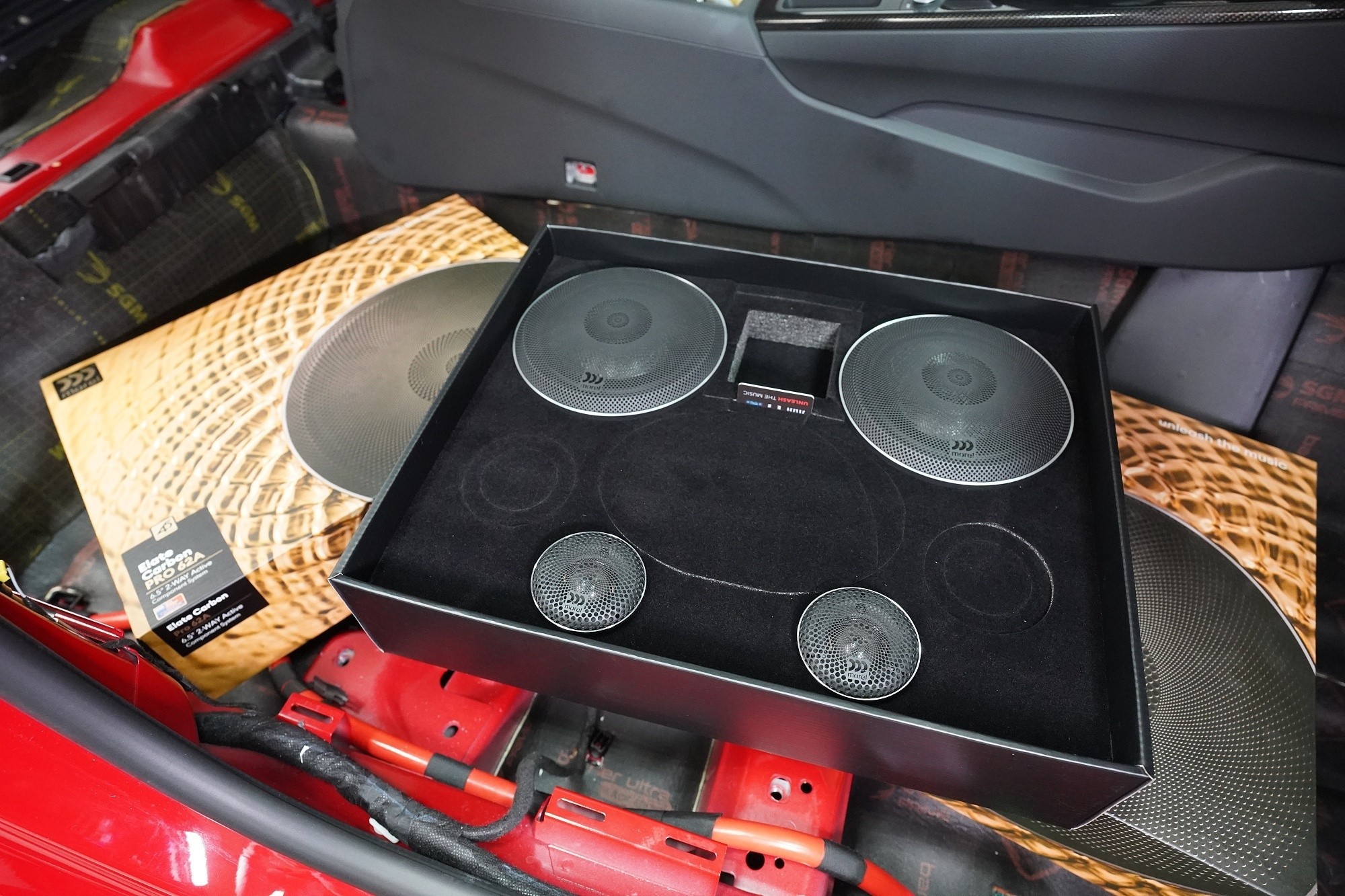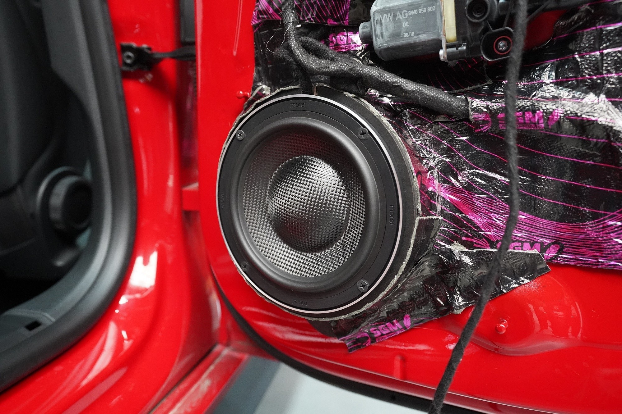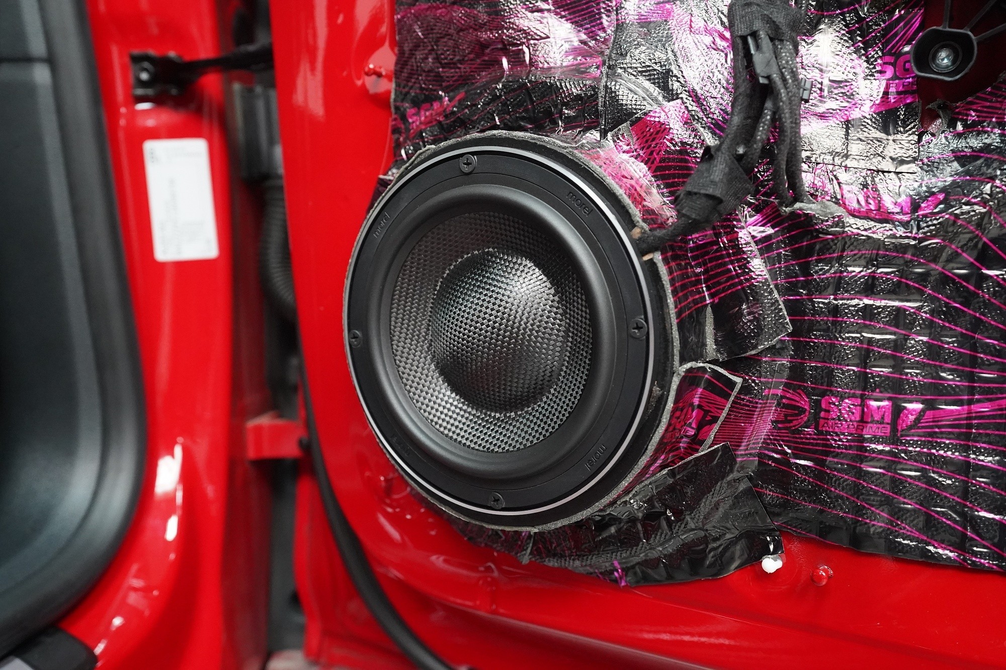 Morel Elate Carbon Pro 62A a Elate Carbon 62, to jsou špičkové reproduktory z druhé nejvyšší řady izraelské značky Morel, které nainstalujeme do předních a zadních dveří tohoto vozu. Přední reproduktory zapojíme v aktivním režimu a pro zadní reproduktory využijeme vysoce kvalitní výhybku od Morelu.