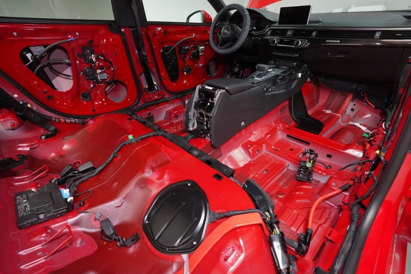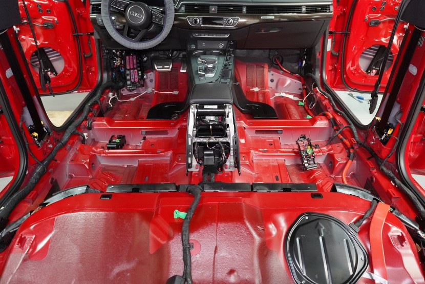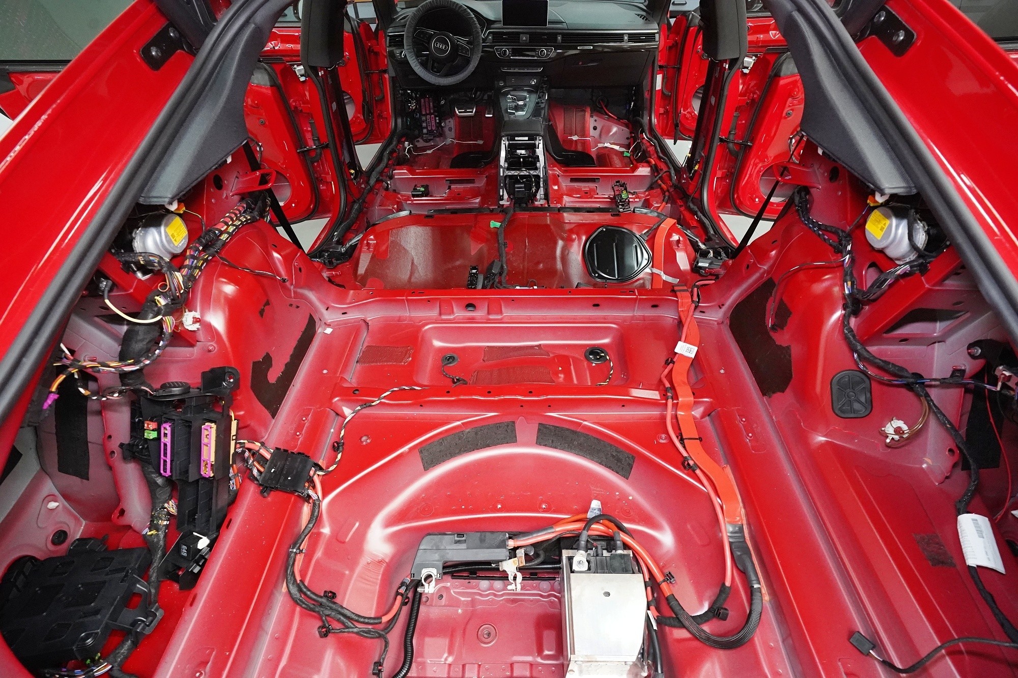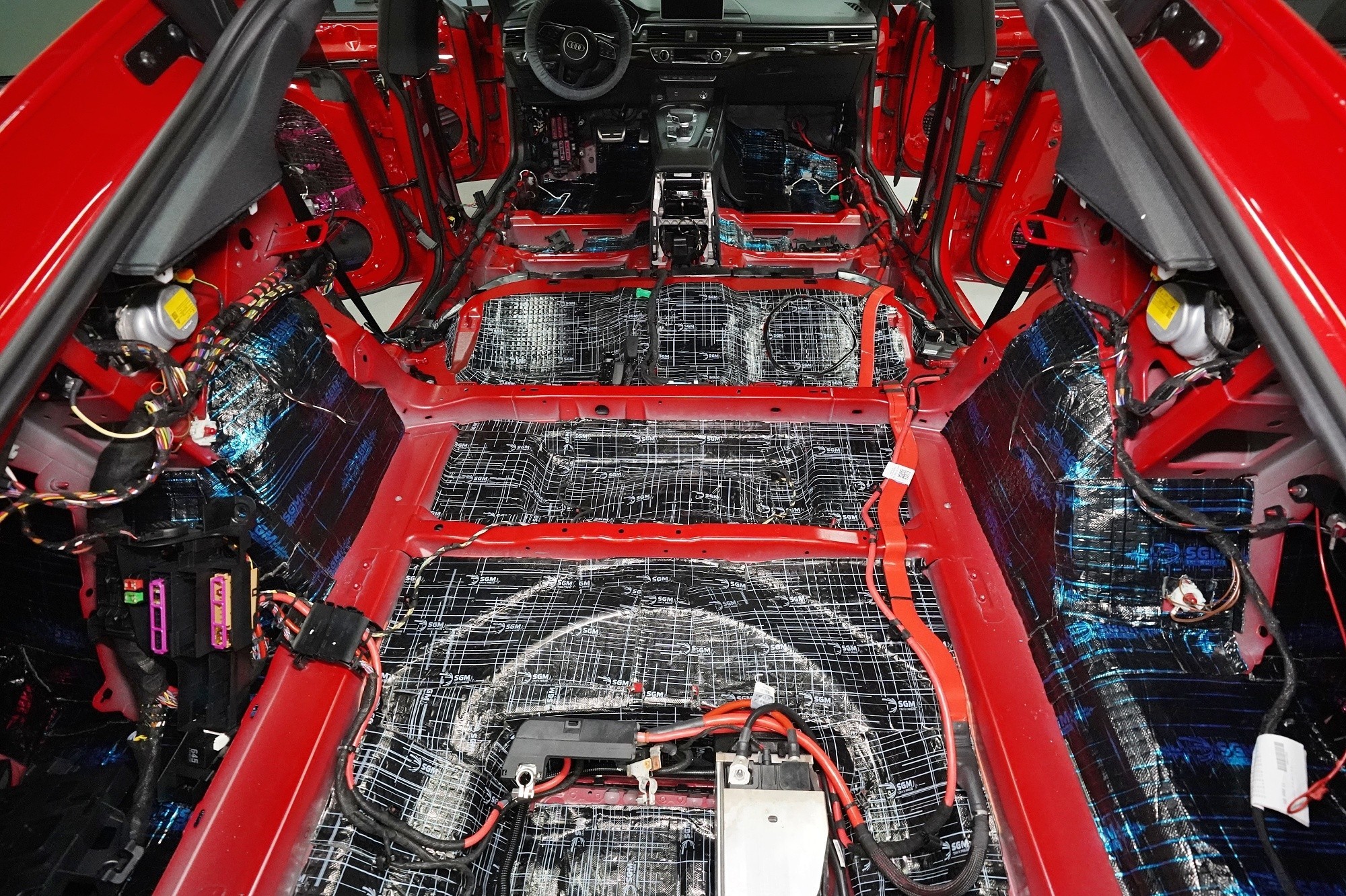 Pojďme se nyní věnovat odhlučnění. Audi A5 patří k těm lépe odhlučněným autům, přesto to jde samozřejmě lépe. Tovární zvuková izolace je součástí čalounění podlahy a podběhů a na karoserii najdete pouze bodově aplikovanou ochranu proti vibracím. Oproti většině automobilkám si v Audi dali více záležet, přesto například na podbězích a v kufru antivibrační materiál téměř chybí a zvukovou izolaci zde taktéž nenajdete. Pouštíme se tedy do práce.