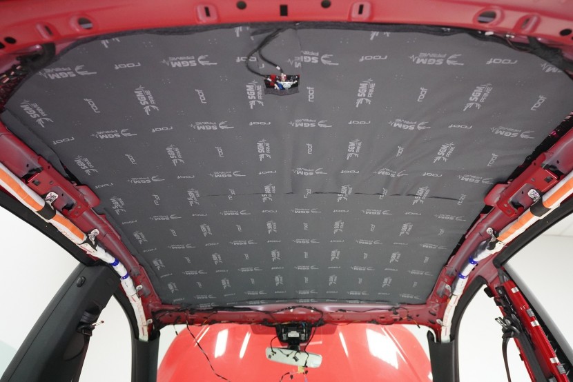 U balíčku Expert Plus odhlučňujeme dvěma vrstvami i střechu. Tou první je lehký antivibrační materiál SGM Air 3 o tloušťce 3 mm a MLF 0,42 jednotek. Air 3 střechu zpevní, zamezí vibracím a například i hluku od dešťových kapek. Díky důkladnému rozválečkování a perfektní adhezi materiálu se nemusíte obávat odlepení během celé životnosti vozu.