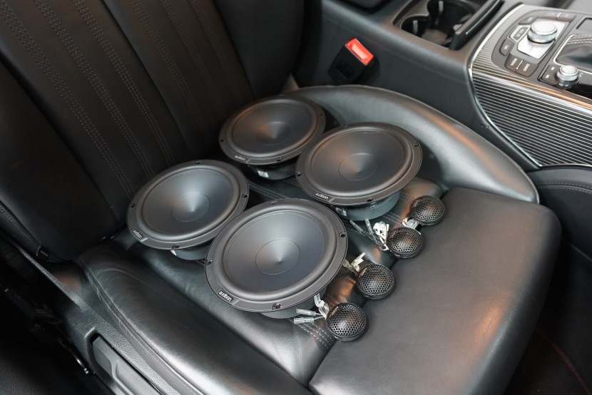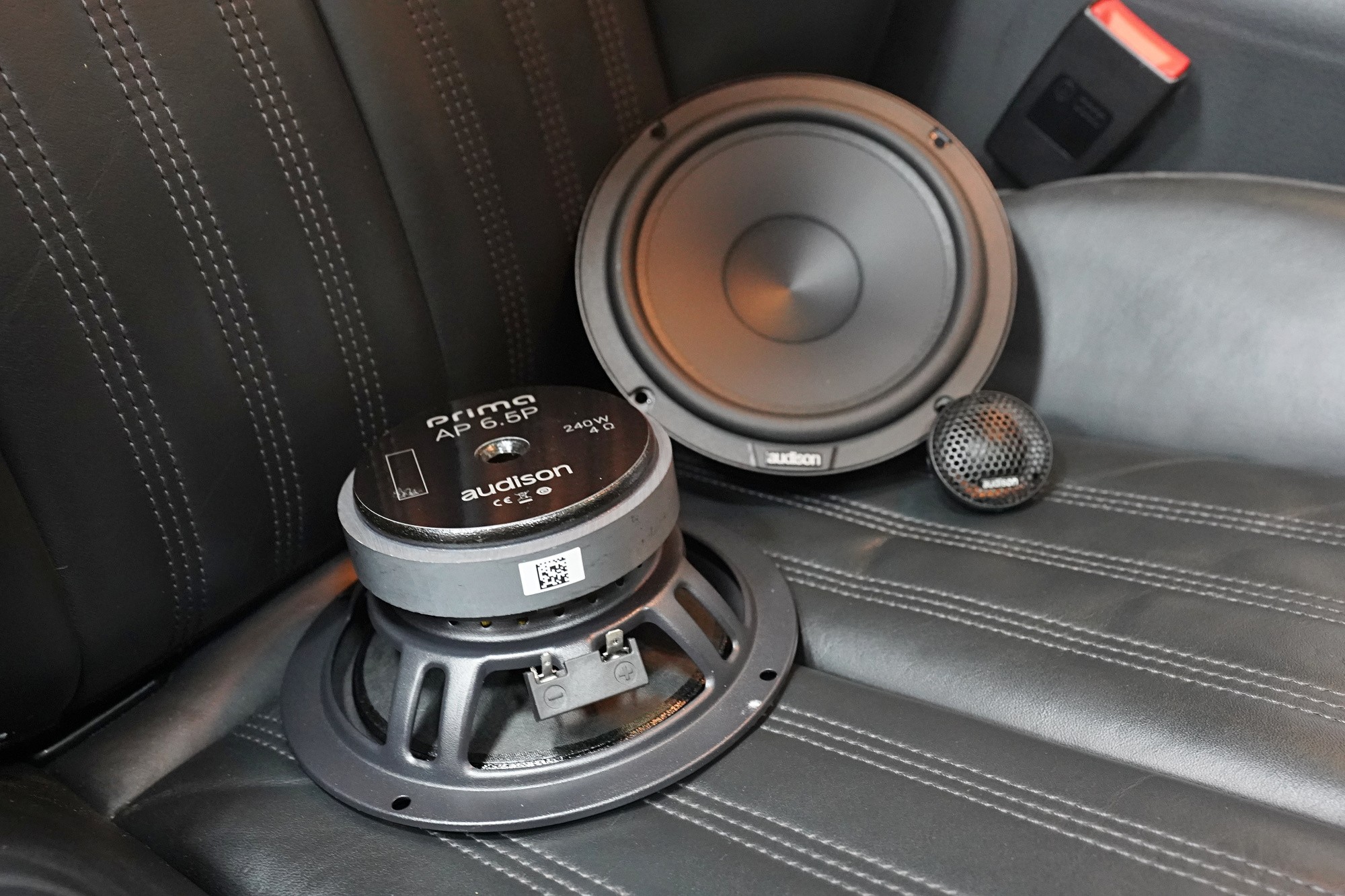 Audison APK 165P, to jsou dvoupásmové komponentní reproduktory italského výrobce Audison, které budeme instalovat do předních i zadních dveří tohoto vozu. Reproduktory se vyznačují kromě nadstandardního zvuku i vysokou citlivostí, díky které zahrají s dostatečným výkonem i na továrním autorádiu. A jelikož hlavní jednotky automobilů Audi patří k těm kvalitnějším, z hlediska výkonu tyto reproduktory nebudou strádat.