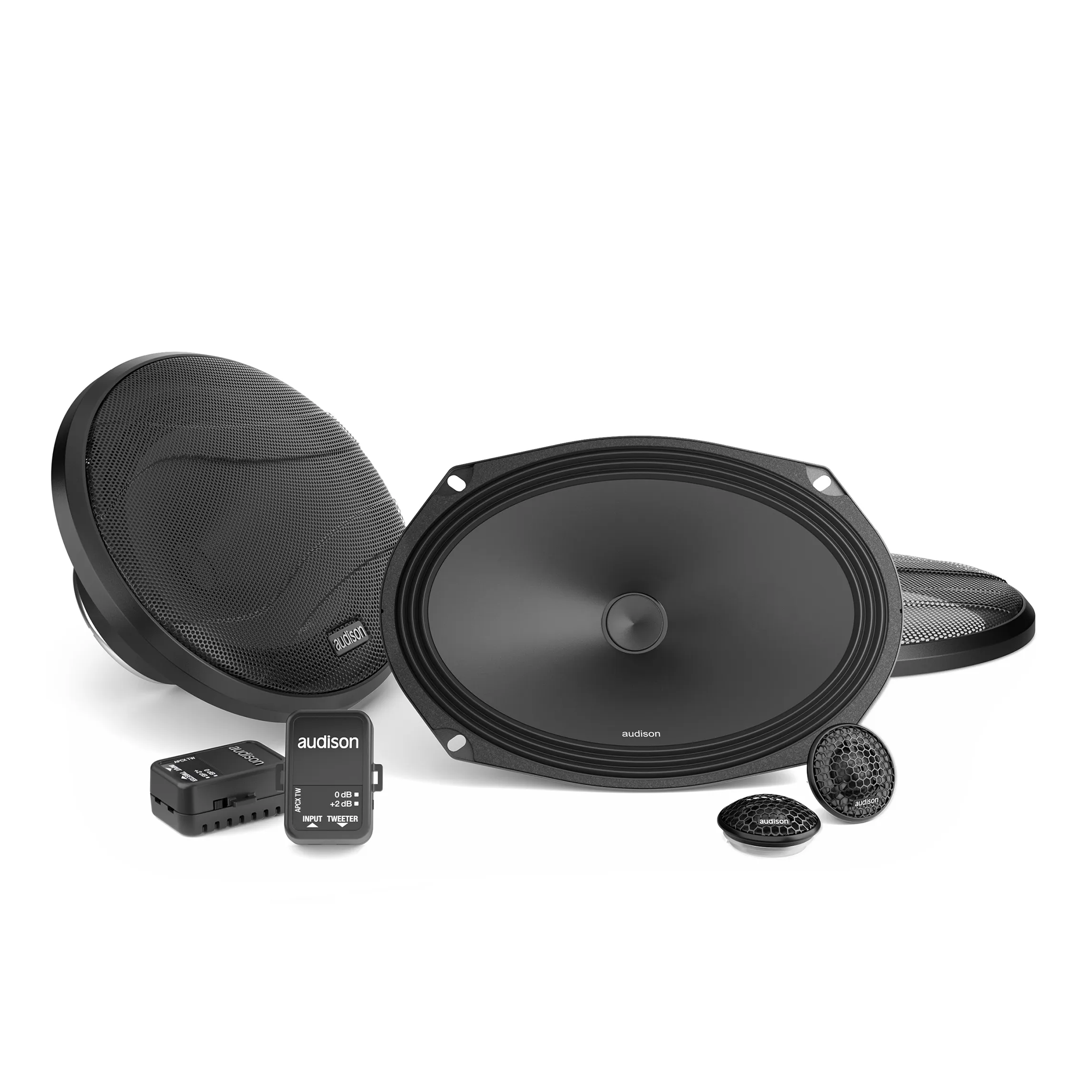 2pásmový systém APK 690 je ideální pro modely automobilů s dveřmi vybavenými velkými eliptickými reproduktory. Systém tvoří středobasový reproduktor 6 x 9" a výškový reproduktor AP 1 s výhybkami APCX TW 690. Výhybky jsou velmi kompaktní pro snadnou instalaci a poskytují dvě možnosti nastavení výškového reproduktoru pro jemné doladění zvuku.Hlavní vlastnosti
