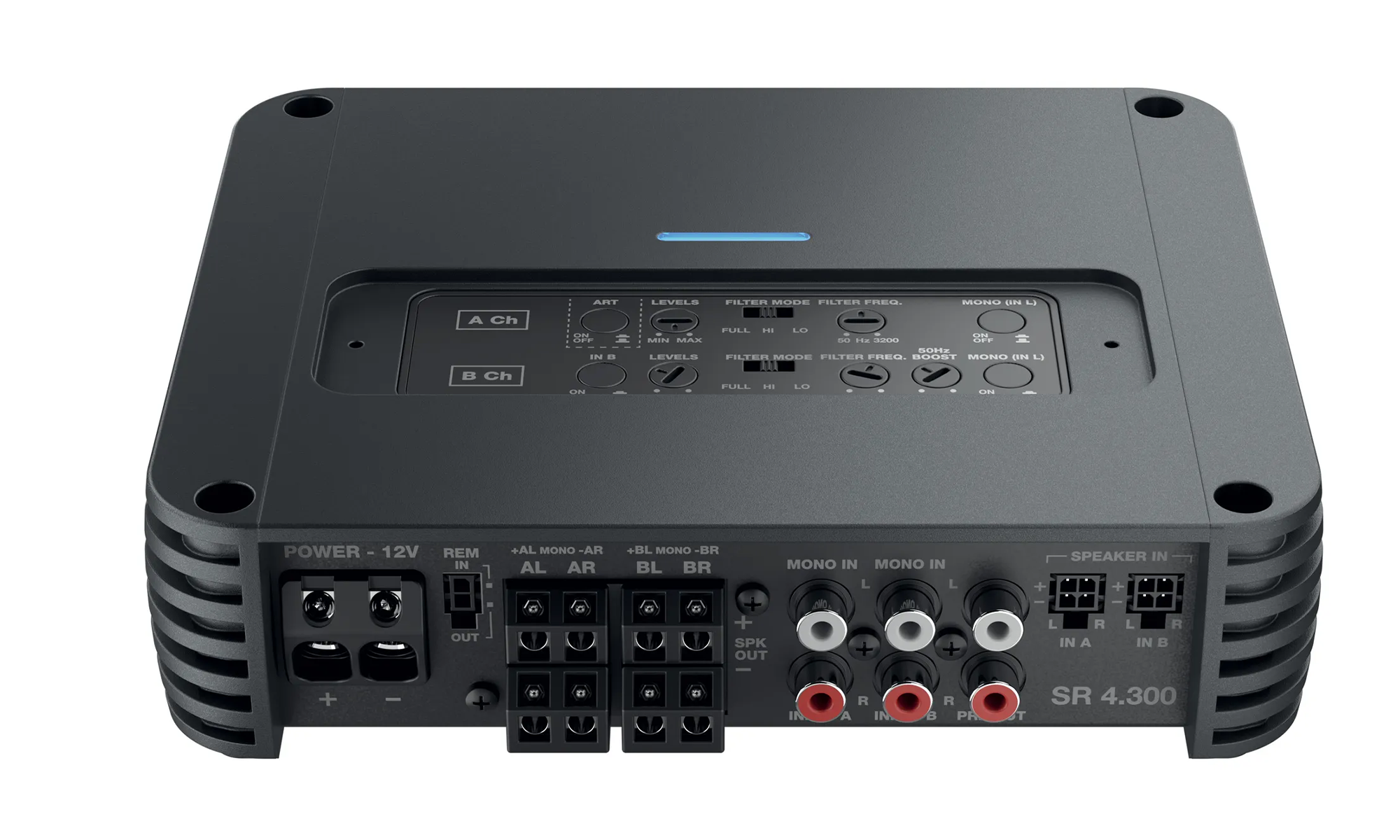 Všechny modely zesilovačů Audison SR jsou vybaveny HI-INPUT vstupy pro připojení k výstupu reproduktorů OEM jednotek a LOW-INPUT (klasické RCA) pro standardní připojení. Při použití vstupu HI-INPUT lze aktivovat funkci ART (Automatic Remote Turn-On / Off) pro ovládání sepínání zesilovačů pomocí tlačítka pro zapnutí hlavní jednotky. Kromě toho je k dispozici vzdálená zásuvka IN / OUT, která umožňuje ovládání více zesilovačů v případě potřeby.