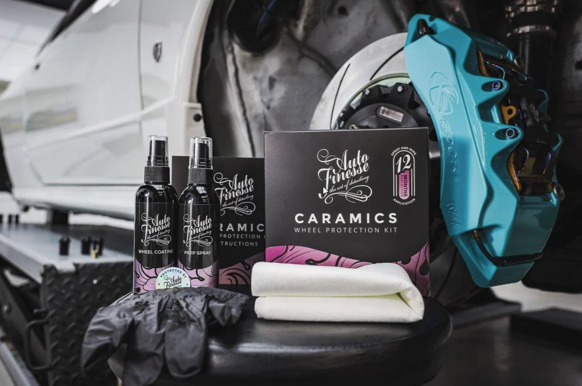 Dlouhotrvající ochrana a lesk pro kola s vydrží 12 měsíců. Caramics je keramická technologie, která se váže na povrch kola a tím nabízí silnou mechanickou ochranu, rychlý odvod vody a následné snadné mytí a čištění. Caramics Wheel Protection Kit je vhodný pro všechny typy povrchů kol - lakovaná, leštěná, chromová apod. Caramics Wheel Coating je zaměřen na snadnost aplikace, kterou zvládne opravdu každý. Žádný problém s nanášením, žádné zdlouhavé stírání. Caramics Wheel Kit neobsahuje jen keramickou ochranu (100 ml), ale i čtyři utěrky, 100 ml přípravku pro přípravu povrchu kol Auto Finesse Paint Prep Spray, díky kterému povrch dokonale připravíte a zrevidujete po leštění či mytí. Dále v balení naleznete i ochranné nitrilové rukavice, Auto Finesse Sticker (samolepku) a důmyslný, graficky zpracovaný instruktážní manuál.
