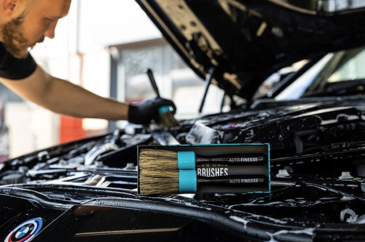 Auto Finesse Detailing Brushes Hog Hair jsou inovované premiové štětce z kančích štětin na detailing exteriéru. Tyto štětce jsou ručně vyráběny v Anglii. Masivní rukojeť z tvrdého dřeva a kančích štětin jsou o 75 % delší, než je standardní délka konkurenčních štětců. Jeho štětiny jsou odolné proti chemikáliím a snadno se narovnají zpět, díky čemuž tyto štětce dlouho vydrží. Jsou ideální pro čištění kol, mřížek a těžko přístupných prostor. Super měkké přírodní štětiny jsou bezpečné pro lak a nehrozí tak nebezpečí poškrábání. Oproti starší variantě jsou Hog Hair štětce mnohem odolnější. Kvalitně nalakované dřevěné držadlo a odolnější upevnění štětin tvoří z těchto štětců super variantu ve světě detailingu. Jsou ideální volbou pro perfektcionalisty, kteří hledají to nejlepší, co trh nabízí. Interior Brush a Upholstery Brush spolu tvoří naprosto bezkonkurenční "dvojici" pro profesionála, který chce pečovat o vůz tím nejlepším způsobem.